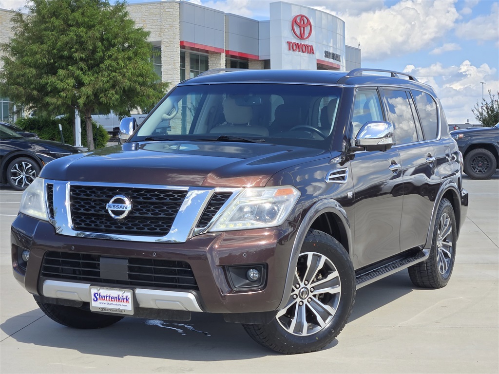 CARFAX One-Owner. Bluetooth, Hands-Free Connections, Navigation / GPS / Telematics, Portable Audio Connections, Premium Audio, 3rd Row Seats, Backup Camera, Leather Seats, Premium Wheels, High Performance Tires, Sunroof / Moonroof, Power Liftgate, Towing Package, Armada SL, 4D Sport Utility, 5.6L V8 DOHC 32V Endurance, 7-Speed Automatic, RWD, Mocha Almond, Almond Leather, Navigation System, Power Liftgate.2017 Mocha Almond Nissan Armada 5.6L V8 DOHC 32V Endurance RWD SLFOR MORE INFORMATION CALL 817-597-5000 to schedule your VIP Test Drive.