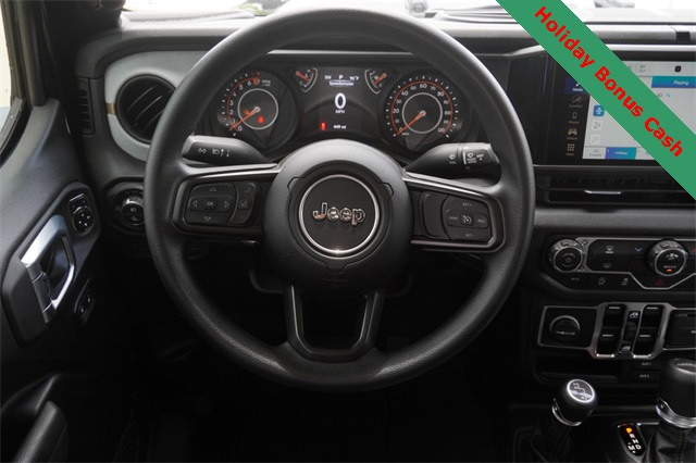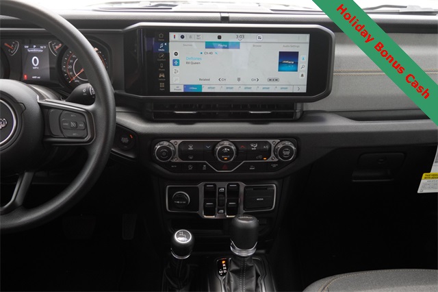 This Gladiator Nighthawk comes well equipped with Quick Order Package 24X Night Hawk (DISC) (110 MPH Vehicle Max Speed Calibration, Anti-Spin Differential Rear Axle, Body Color Fender Flares (2-Piece), Dana M210 Wide Front Axle, Dana M220 Wide Rear Axle, Daytime Running Lamp System, Deep Tint Sunscreen Windows, Mold In Color Bumper w/Gloss Black, Power Heated Mirrors, Protection Sill Rails, Sport Rear Shock Absorbers, Sport Suspension (DISC), and Wheels: 20" x 8" Painted Black Aluminum (DISC)), Trailer Tow & Aux Switch Group (Auxiliary Switches, Class IV Receiver Hitch, Heavy-Duty Engine Cooling, and Trailer Hitch Zoom), Gladiator Nighthawk NIGHTHAWK, 4D Crew Cab, 3.6L V6 24V VVT, 8-Speed Automatic, 4WD, Black Clearcoat, Black Cloth, GPS Navigation, 12.3" Touchscreen Display, 3.73 Rear Axle Ratio, 4-Wheel Disc Brakes, 4G LTE Wi-Fi Hot Spot, 8 Speakers, ABS brakes, Air Conditioning, Alexa Built-In, AM/FM radio: SiriusXM, Apple CarPlay, Apple CarPlay/Android Auto, Brake assist, Cloth Low-Back Bucket Seats, Compass, Connectivity - US/Canada, Delay-off headlights, Driver door bin, Driver vanity mirror, Dual front impact airbags, Dual front side impact airbags, Electronic Stability Control, Front anti-roll bar, Front Bucket Seats, Front Center Armrest w/Storage, Front fog lights, Front reading lights, Google Android Auto, Illuminated entry, Integrated roll-over protection, Low tire pressure warning, MOPAR Hard Tri-Fold Tonneau Cover, MOPAR Plastic Door Sill Guards, MOPAR Satin Black Grille, Normal Duty Suspension, Occupant sensing airbag, Outside temperature display, Overhead airbag, Panic alarm, ParkView Rear Back-Up Camera, Passenger door bin, Passenger vanity mirror, Power steering, Power windows, Radio data system, Radio: Uconnect 5 w/12.3" Display, Rear anti-roll bar, Rear reading lights, Remote keyless entry, Speed control, Split folding rear seat, Steering wheel mounted audio controls, Tachometer, Telescoping steering wheel, Tilt steering wheel, Traction control, Trip computer, USB Host Flip, Variably intermittent wipers, Voltmeter, and Wheels: 17" x 7.5" Black Steel Styled.