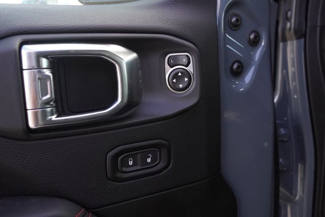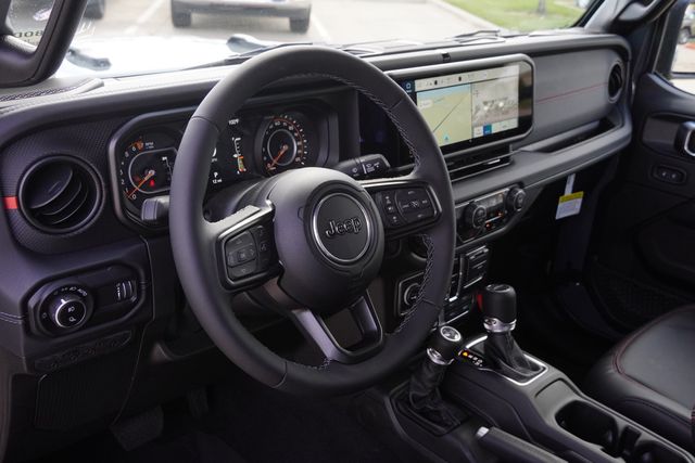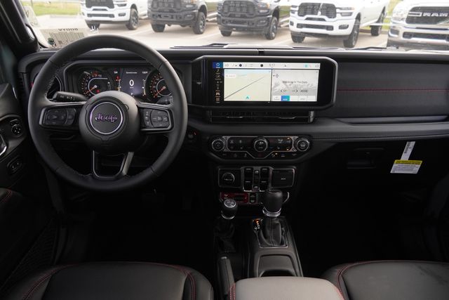 This Gladiator Rubicon comes well equipped with Quick Order Package 24Y Rubicon X (Blind Spot & Cross Path Detection, Body Color 3-Piece Hard Top, Full Length Floor Console Premium Armrest, GPS Navigation, Heated Front Seats, Heated Steering Wheel, Integrated Off-Road Camera, Leather Wrapped Park Brake Handle, Leather Wrapped Shift Knob, MOPAR Hardtop Headliner, ParkSense Rear Park Assist System, Power 4-Way Driver Lumbar Adjust, Power 4-Way Passenger Lumbar Adjust, Power Adjust 8-Way Driver Seat, Power Adjust 8-Way Front Passenger Seat, Power Adjust Nappa Leather Seats, Premium Door Trim Panel, Radio: Uconnect 5 Nav w/12.3" Display, Rear Armrest w/Cupholder Seat, Rear Sliding Window, USB Host Flip, 4G LTE Wi-Fi Hot Spot, Alexa Built-In, Alpine Premium Audio System, Apple CarPlay, Auto High Beam Headlamp Control, Auto-Dimming Rear-View Mirror, Bluetooth Wireless Speaker, Body Color Rubicon Highline Flare, Connected Travel & Traffic Services, Connectivity - US/Canada, Freedom Panel Storage Bag, Google Android Auto, Integrated Voice Command w/Bluetooth, Rear Window Defroster, SiriusXM Radio Service, SiriusXM w/360L, Steel Front Bumper, and Universal Garage Door Opener), Gladiator Rubicon, 4D Crew Cab, 3.6L V6 24V VVT, 8-Speed Automatic, 4WD, Anvil Clearcoat, Black Leather, Wheels: 17" x 7.5" Machined/Painted Black, 12.3" Touchscreen Display, 4-Wheel Disc Brakes, 4.10 Rear Axle Ratio, 8 Speakers, 97 MPH Vehicle Max Speed Calibration, ABS brakes, Air Conditioning, Alloy wheels, AM/FM radio: SiriusXM, Apple CarPlay/Android Auto, Automatic temperature control, Brake assist, Cloth Low-Back Bucket Seats, Compass, Delay-off headlights, Driver door bin, Driver vanity mirror, Dual front impact airbags, Dual front side impact airbags, Electronic Stability Control, Emergency communication system: Jeep Connect, Front anti-roll bar, Front Bucket Seats, Front Center Armrest w/Storage, Front dual zone A/C, Front fog lights, Front License Plate Bracket, Front reading lights, Fully automatic headlights, Heated door mirrors, Illuminated entry, Integrated roll-over protection, Low tire pressure warning, MOPAR All-Weather Slush Mats, MOPAR Spray In Bedliner, Occupant sensing airbag, Outside temperature display, Overhead airbag, Panic alarm, Passenger door bin, Passenger vanity mirror, Performance Suspension, Power door mirrors, Power steering, Power windows, Radio data system, Radio: Uconnect 5 w/12.3" Display, Rear anti-roll bar, Rear reading lights, Remote keyless entry, Security system, Speed control, Split folding rear seat, Steering wheel mounted audio controls, Tachometer, Telescoping steering wheel, Tilt steering wheel, Traction control, Trip computer, Variably intermittent wipers, and Voltmeter.