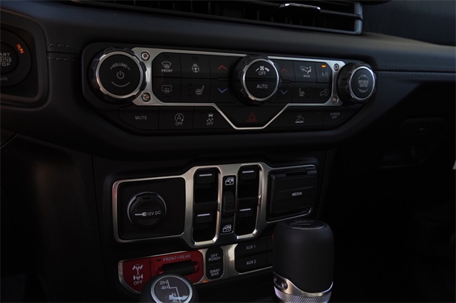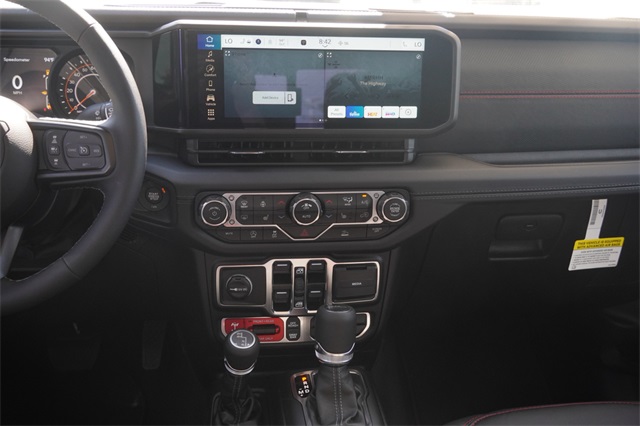 This Gladiator Rubicon comes well equipped with Convenience Group (Heated Front Seats, Heated Steering Wheel, Remote Start System, Universal Garage Door Opener, SiriusXM Radio Service, and SiriusXM w/360L), Quick Order Package 24R Rubicon, Active Cruise Control, Wheels: 17" x 7.5" Machined/Painted Black, 12.3" Touchscreen Display, 4-Wheel Disc Brakes, 4.10 Rear Axle Ratio, 4G LTE Wi-Fi Hot Spot, 8 Speakers, 97 MPH Vehicle Max Speed Calibration, ABS brakes, Air Conditioning, Alexa Built-In, Alloy wheels, AM/FM radio: SiriusXM, Apple CarPlay, Apple CarPlay/Android Auto, Automatic temperature control, Black 3-Piece Hard Top, Brake assist, Cloth Low-Back Bucket Seats, Compass, Connectivity - US/Canada, Delay-off headlights, Driver door bin, Driver vanity mirror, Dual front impact airbags, Dual front side impact airbags, Electronic Stability Control, Emergency communication system: Jeep Connect, Freedom Panel Storage Bag, Front anti-roll bar, Front Bucket Seats, Front Center Armrest w/Storage, Front dual zone A/C, Front fog lights, Front License Plate Bracket, Front reading lights, Full Length Floor Console Premium Armrest, Fully automatic headlights, Google Android Auto, Heated door mirrors, Illuminated entry, Integrated roll-over protection, Leather Wrapped Park Brake Handle, Leather Wrapped Shift Knob, Low tire pressure warning, MOPAR Spray In Bedliner, Occupant sensing airbag, Outside temperature display, Overhead airbag, Panic alarm, Passenger door bin, Passenger vanity mirror, Performance Suspension, Power 4-Way Driver Lumbar Adjust, Power 4-Way Passenger Lumbar Adjust, Power Adjust 8-Way Driver Seat, Power Adjust 8-Way Front Passenger Seat, Power Adjust Nappa Leather Seats, Power door mirrors, Power steering, Power windows, Premium Door Trim Panel, Radio data system, Radio: Uconnect 5 w/12.3" Display, Rear anti-roll bar, Rear Armrest w/Cupholder Seat, Rear reading lights, Rear Sliding Window, Rear Window Defroster, Remote keyless entry, Security system, Speed control, Split folding rear seat, Steering wheel mounted audio controls, Tachometer, Telescoping steering wheel, Tilt steering wheel, Traction control, Trip computer, USB Host Flip, Variably intermittent wipers, and Voltmeter.