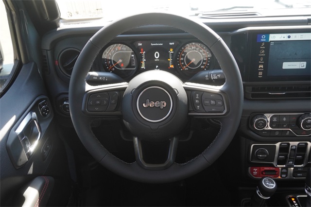 APPLE CAR PLAY, ANDROID AUTO, LEATHER INTERIOR, BACK UP CAMERA, KEYLESS START, Active Cruise Control, Convenience Group, Heated Front Seats, Heated Steering Wheel, Quick Order Package 24R Rubicon, Remote Start System, Universal Garage Door Opener, Wheels: 17" x 7.5" Machined/Painted Black.