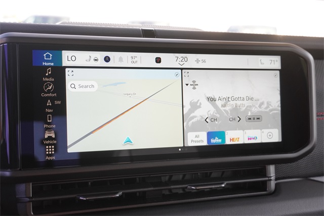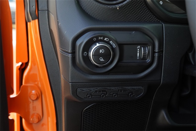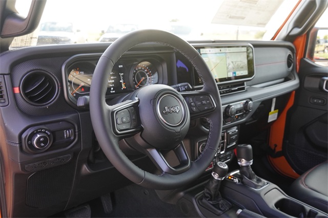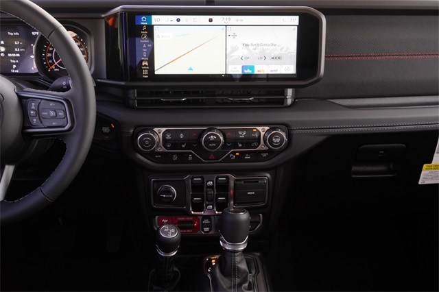 This Gladiator Rubicon comes well equipped with Quick Order Package 24Y Rubicon X (4G LTE Wi-Fi Hot Spot, Alexa Built-In, Alpine Premium Audio System, Apple CarPlay, Auto High Beam Headlamp Control, Auto-Dimming Rear-View Mirror, Blind Spot & Cross Path Detection, Bluetooth Wireless Speaker, Body Color 3-Piece Hard Top, Body Color Rubicon Highline Flare, Connected Travel & Traffic Services, Connectivity - US/Canada, Freedom Panel Storage Bag, Full Length Floor Console Premium Armrest, Google Android Auto, GPS Navigation, Heated Front Seats, Heated Steering Wheel, Integrated Off-Road Camera, Integrated Voice Command w/Bluetooth, Leather Wrapped Park Brake Handle, Leather Wrapped Shift Knob, MOPAR Hardtop Headliner, ParkSense Rear Park Assist System, Power 4-Way Driver Lumbar Adjust, Power 4-Way Passenger Lumbar Adjust, Power Adjust 8-Way Driver Seat, Power Adjust 8-Way Front Passenger Seat, Power Adjust Nappa Leather Seats, Premium Door Trim Panel, Radio: Uconnect 5 Nav w/12.3" Display, Rear Armrest w/Cupholder Seat, Rear Sliding Window, Steel Front Bumper, Universal Garage Door Opener, USB Host Flip, Rear Window Defroster, SiriusXM Radio Service, and SiriusXM w/360L), 12.3" Touchscreen Display, 4-Wheel Disc Brakes, 4.10 Rear Axle Ratio, 8 Speakers, 97 MPH Vehicle Max Speed Calibration, ABS brakes, Air Conditioning, Alloy wheels, AM/FM radio: SiriusXM, Apple CarPlay/Android Auto, Automatic temperature control, Brake assist, Cloth Low-Back Bucket Seats, Compass, Delay-off headlights, Driver door bin, Driver vanity mirror, Dual front impact airbags, Dual front side impact airbags, Electronic Stability Control, Emergency communication system: Jeep Connect, Front anti-roll bar, Front Bucket Seats, Front Center Armrest w/Storage, Front dual zone A/C, Front fog lights, Front License Plate Bracket, Front reading lights, Fully automatic headlights, Heated door mirrors, Illuminated entry, Integrated roll-over protection, Low tire pressure warning, MOPAR All-Weather Slush Mats, MOPAR Spray In Bedliner, Occupant sensing airbag, Outside temperature display, Overhead airbag, Panic alarm, Passenger door bin, Passenger vanity mirror, Performance Suspension, Power door mirrors, Power steering, Power windows, Radio data system, Radio: Uconnect 5 w/12.3" Display, Rear anti-roll bar, Rear reading lights, Remote keyless entry, Security system, Speed control, Split folding rear seat, Steering wheel mounted audio controls, Tachometer, Telescoping steering wheel, Tilt steering wheel, Traction control, Trip computer, Variably intermittent wipers, Voltmeter, and Wheels: 17" x 7.5" Machined/Painted Black.