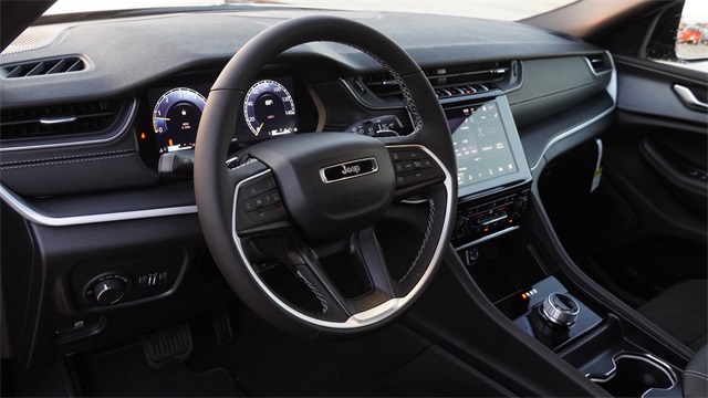 This Grand Cherokee L Altitude X comes well equipped with Quick Order Package 23M Altitude X (115V Auxiliary Power Outlet, 3rd Row Charge-Only USB Ports, Altitude X, Black Headliner, Capri Leatherette/Suede Seats, Delete Laredo Badge, Gloss Black Exterior Accents, Heated Front Seats, Heated Steering Wheel, Power Liftgate, Power Sunroof, Rain Sensitive Windshield Wipers, Remote Start System, Selectable Tire Fill Alert, Wheels: 18" x 8.0" Fully Painted Aluminum 1, and Wireless Charging Pad), 3.45 Rear Axle Ratio, 3rd row seats: split-bench, 4-Wheel Disc Brakes, 6 Speakers, ABS brakes, Air Conditioning, Alloy wheels, AM/FM radio: SiriusXM, Anti-whiplash front head restraints, Automatic temperature control, Brake assist, Bumpers: body-color, Cloth Seats, Compass, Delay-off headlights, Driver door bin, Driver vanity mirror, Dual front impact airbags, Dual front side impact airbags, Electronic Stability Control, Emergency communication system, Four wheel independent suspension, Front anti-roll bar, Front Bucket Seats, Front Center Armrest w/Storage, Front dual zone A/C, Front License Plate Bracket, Front reading lights, Fully automatic headlights, Heated door mirrors, Illuminated entry, Knee airbag, Low tire pressure warning, Manual Fold Seatbacks, Model Year Tracking, Normal Duty Suspension, Occupant sensing airbag, Outside temperature display, Overhead airbag, Overhead console, Panic alarm, ParkView Rear Back-Up Camera, Passenger door bin, Passenger vanity mirror, Power door mirrors, Power driver seat, Power steering, Power windows, Radio data system, Radio: Uconnect 5 w/8.4" Display, Rear air conditioning, Rear anti-roll bar, Rear reading lights, Rear window defroster, Rear window wiper, Reclining 3rd row seat, Remote keyless entry, Security system, Speed control, Speed-Sensitive Wipers, Split folding rear seat, Spoiler, Steering wheel mounted audio controls, Tachometer, Telescoping steering wheel, Tilt steering wheel, Traction control, Trip computer, Variably intermittent wipers, Voltmeter, Wheels: 18" x 8.0" Fully Painted Aluminum, and Wheels: 20" x 8.5" Gloss Black Painted Aluminum.