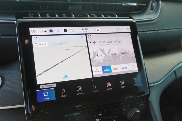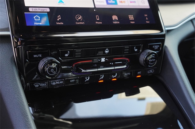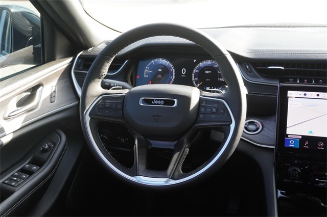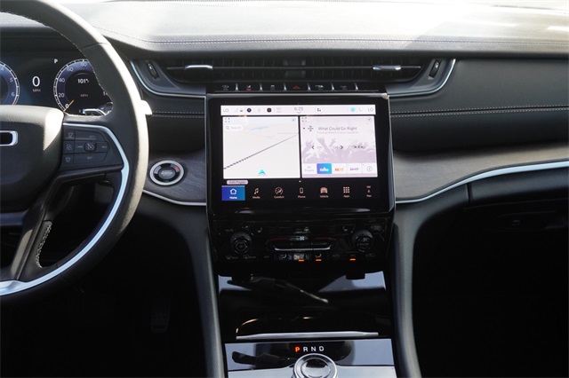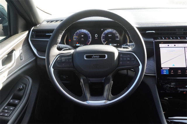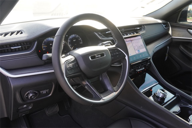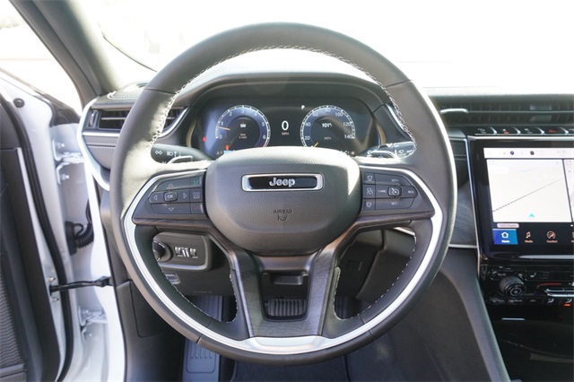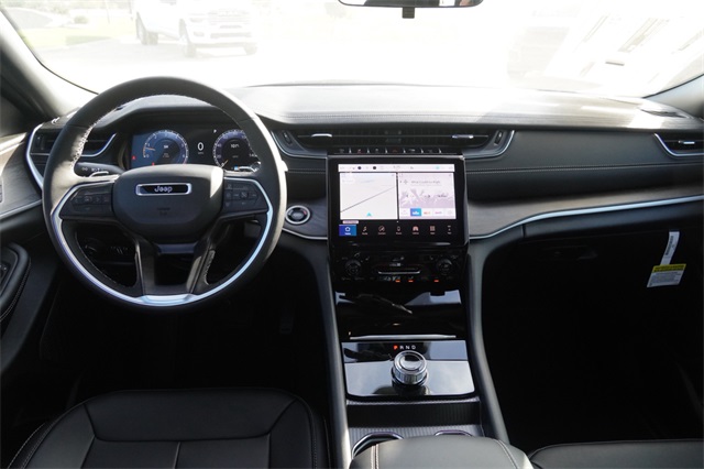 This Grand Cherokee L Limited comes well equipped with Black Appearance Package (Gloss Black Exterior Accents and Wheels: 20" x 8.5" Gloss Black Painted Aluminum), Quick Order Package 22E, 3rd row seats: split-bench, Capri Leatherette Seats, Dual-Pane Panoramic Sunroof, Heated front seats, Heated rear seats, Interior Rear Facing Camera, Navigation System, ParkView Rear Back-Up Camera, Power Liftgate, 3.45 Rear Axle Ratio, 4-Wheel Disc Brakes, 6 Speakers, ABS brakes, Active Noise Control System, Air Conditioning, Alloy wheels, AM/FM radio: SiriusXM with 360L, Anti-whiplash front head restraints, Audio memory, Auto High-beam Headlights, Automatic temperature control, Brake assist, Bumpers: body-color, Compass, Delay-off headlights, Driver door bin, Driver vanity mirror, Dual front impact airbags, Dual front side impact airbags, Electronic Stability Control, Emergency communication system, Four wheel independent suspension, Front anti-roll bar, Front Bucket Seats, Front Center Armrest w/Storage, Front dual zone A/C, Front fog lights, Front License Plate Bracket, Front reading lights, Fully automatic headlights, Garage door transmitter, Heated door mirrors, Heated steering wheel, Illuminated entry, Knee airbag, Low tire pressure warning, Manual Fold Seatbacks, Memory seat, Model Year Tracking, Normal Duty Suspension, Occupant sensing airbag, Outside temperature display, Overhead airbag, Overhead console, Panic alarm, Passenger door bin, Passenger vanity mirror, Power door mirrors, Power driver seat, Power passenger seat, Power steering, Power windows, Radio data system, Radio: Uconnect 5 Nav w/10.1" Display, Rear air conditioning, Rear anti-roll bar, Rear reading lights, Rear window defroster, Rear window wiper, Reclining 3rd row seat, Remote keyless entry, Security system, Speed control, Speed-Sensitive Wipers, Split folding rear seat, Spoiler, Steering wheel mounted audio controls, Tachometer, Telescoping steering wheel, Tilt steering wheel, Traction control, Trip computer, Turn signal indicator mirrors, Variably intermittent wipers, and Voltmeter.