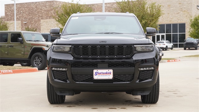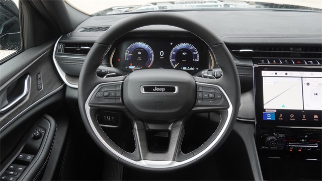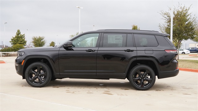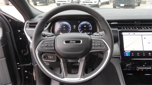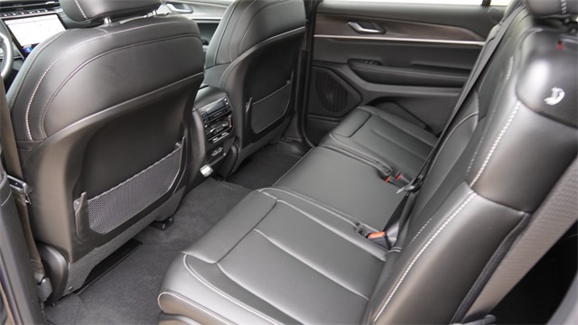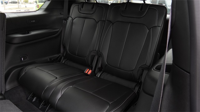 This Grand Cherokee L Limited comes well equipped with Black Appearance Package (Gloss Black Exterior Accents and Wheels: 20" x 8.5" Gloss Black Painted Aluminum), Quick Order Package 23E (DISC), 2nd Row 60/40 Bench w/Manual Tip/Slide, 2nd Row Seat Center Armrest/Cupholders, 3 Rear Seat Head Restraints, 3.45 Rear Axle Ratio, 3rd row seats: split-bench, 4-Wheel Disc Brakes, 6 Speakers, 7-Passenger Seating, ABS brakes, Active Noise Control System, Air Conditioning, Alloy wheels, AM/FM radio: SiriusXM with 360L, Anti-whiplash front head restraints, Audio memory, Auto High-beam Headlights, Automatic temperature control, Brake assist, Bumpers: body-color, Capri Leatherette Seats, Center Rear 3-Point Seat Belt, Compass, Delay-off headlights, Driver door bin, Driver vanity mirror, Dual front impact airbags, Dual front side impact airbags, Dual-Pane Panoramic Sunroof, Electronic Stability Control, Emergency communication system, Four wheel independent suspension, Front anti-roll bar, Front Bucket Seats, Front Center Armrest w/Storage, Front dual zone A/C, Front fog lights, Front License Plate Bracket, Front reading lights, Fully automatic headlights, Garage door transmitter, Heated door mirrors, Heated front seats, Heated rear seats, Heated steering wheel, Illuminated entry, Interior Rear Facing Camera, Knee airbag, Low tire pressure warning, Manual Fold Seatbacks, Memory seat, Model Year Tracking, Navigation System, Normal Duty Suspension, Occupant sensing airbag, Outside temperature display, Overhead airbag, Overhead console, Panic alarm, ParkView Rear Back-Up Camera, Passenger door bin, Passenger vanity mirror, Power door mirrors, Power driver seat, Power Liftgate, Power passenger seat, Power steering, Power windows, Radio data system, Radio: Uconnect 5 Nav w/10.1" Display, Rear air conditioning, Rear anti-roll bar, Rear reading lights, Rear window defroster, Rear window wiper, Reclining 3rd row seat, Remote keyless entry, Security system, Speed control, Speed-Sensitive Wipers, Split folding rear seat, Spoiler, Steering wheel mounted audio controls, Tachometer, Telescoping steering wheel, Tilt steering wheel, Traction control, Trip computer, Turn signal indicator mirrors, Variably intermittent wipers, Voltmeter, and Wheels: 18" x 8.0" Polished/Painted Aluminum.