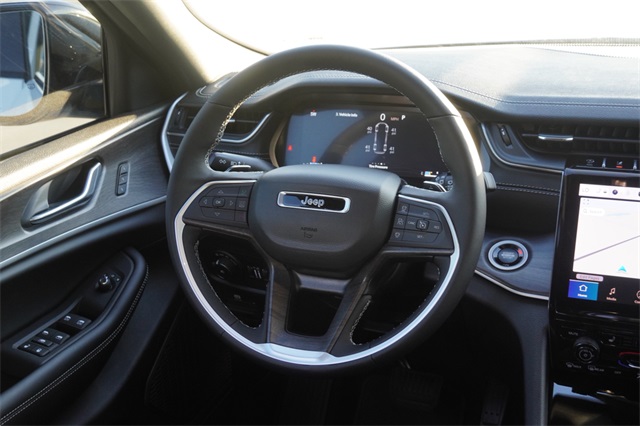 This Grand Cherokee L Limited comes well equipped with Quick Order Package 23E (DISC), Memory seat, Navigation System, Power windows, Remote keyless entry, Steering wheel mounted audio controls, 2nd Row 60/40 Bench w/Manual Tip/Slide, 2nd Row Seat Center Armrest/Cupholders, 3 Rear Seat Head Restraints, 3.45 Rear Axle Ratio, 3rd row seats: split-bench, 4-Wheel Disc Brakes, 6 Speakers, 7-Passenger Seating, ABS brakes, Active Noise Control System, Air Conditioning, Alloy wheels, AM/FM radio: SiriusXM with 360L, Anti-whiplash front head restraints, Audio memory, Auto High-beam Headlights, Automatic temperature control, Brake assist, Bumpers: body-color, Capri Leatherette Seats, Center Rear 3-Point Seat Belt, Compass, Delay-off headlights, Driver door bin, Driver vanity mirror, Dual front impact airbags, Dual front side impact airbags, Electronic Stability Control, Emergency communication system, Four wheel independent suspension, Front anti-roll bar, Front Bucket Seats, Front Center Armrest w/Storage, Front dual zone A/C, Front fog lights, Front License Plate Bracket, Front reading lights, Fully automatic headlights, Garage door transmitter, Heated door mirrors, Heated front seats, Heated rear seats, Heated steering wheel, Illuminated entry, Knee airbag, Low tire pressure warning, Manual Fold Seatbacks, Model Year Tracking, Normal Duty Suspension, Occupant sensing airbag, Outside temperature display, Overhead airbag, Overhead console, Panic alarm, ParkView Rear Back-Up Camera, Passenger door bin, Passenger vanity mirror, Power door mirrors, Power driver seat, Power Liftgate, Power passenger seat, Power steering, Radio data system, Radio: Uconnect 5 Nav w/10.1" Display, Rear air conditioning, Rear anti-roll bar, Rear reading lights, Rear window defroster, Rear window wiper, Reclining 3rd row seat, Security system, Speed control, Speed-Sensitive Wipers, Split folding rear seat, Spoiler, Tachometer, Telescoping steering wheel, Tilt steering wheel, Traction control, Trip computer, Turn signal indicator mirrors, Variably intermittent wipers, Voltmeter, and Wheels: 18" x 8.0" Polished/Painted Aluminum.