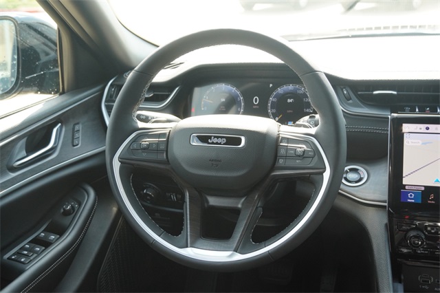 This Grand Cherokee L Limited comes well equipped with Black Appearance Package (Gloss Black Exterior Accents and Wheels: 20" x 8.5" Gloss Black Painted Aluminum), Luxury Tech Group II (2nd Row Manual Window Shades, Auto-Dimming Exterior Driver Mirror, Capri Leatherette w/Axis II Seats, Integrated Off-Road Camera, Intersection Collision Assist System, Memory Steering Column, ParkSense Front/Rear Park Assist w/Stop, Passive Entry - Front/Rear Doors, Liftgate, Power Tilt/Telescope Steering Column, Rain Sensitive Windshield Wipers, Rear Back Up Camera Washer, Rearview Autodim Digital Display Mirror, Surround View Camera System, Ventilated Front Seats, and Wireless Charging Pad), Quick Order Package 23E (DISC), Dual-Pane Panoramic Sunroof, Interior Rear Facing Camera, Memory seat, ParkView Rear Back-Up Camera, Power driver seat, Power Liftgate, 3.45 Rear Axle Ratio, 3rd row seats: split-bench, 4-Wheel Disc Brakes, 6 Speakers, ABS brakes, Active Noise Control System, Air Conditioning, Alloy wheels, AM/FM radio: SiriusXM with 360L, Anti-whiplash front head restraints, Audio memory, Auto High-beam Headlights, Automatic temperature control, Brake assist, Bumpers: body-color, Capri Leatherette Seats, Compass, Delay-off headlights, Driver door bin, Driver vanity mirror, Dual front impact airbags, Dual front side impact airbags, Electronic Stability Control, Emergency communication system, Four wheel independent suspension, Front anti-roll bar, Front Bucket Seats, Front Center Armrest w/Storage, Front dual zone A/C, Front fog lights, Front License Plate Bracket, Front reading lights, Fully automatic headlights, Garage door transmitter, Heated door mirrors, Heated front seats, Heated rear seats, Heated steering wheel, Illuminated entry, Knee airbag, Low tire pressure warning, Manual Fold Seatbacks, Model Year Tracking, Navigation System, Normal Duty Suspension, Occupant sensing airbag, Outside temperature display, Overhead airbag, Overhead console, Panic alarm, Passenger door bin, Passenger vanity mirror, Power door mirrors, Power passenger seat, Power steering, Power windows, Radio data system, Radio: Uconnect 5 Nav w/10.1" Display, Rear air conditioning, Rear anti-roll bar, Rear reading lights, Rear window defroster, Rear window wiper, Reclining 3rd row seat, Remote keyless entry, Security system, Speed control, Speed-Sensitive Wipers, Split folding rear seat, Spoiler, Steering wheel mounted audio controls, Tachometer, Telescoping steering wheel, Tilt steering wheel, Traction control, Trip computer, Turn signal indicator mirrors, Variably intermittent wipers, Voltmeter, and Wheels: 18" x 8.0" Polished/Painted Aluminum.