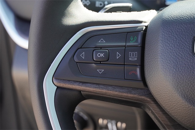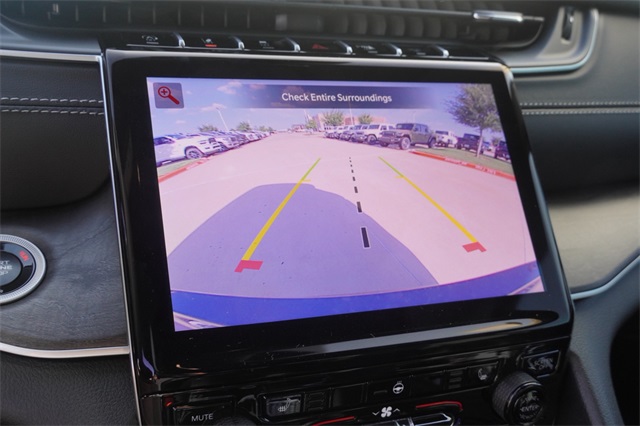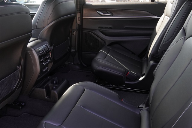 This Grand Cherokee L Limited comes well equipped with Black Appearance Package (Gloss Black Exterior Accents and Wheels: 20" x 8.5" Gloss Black Painted Aluminum), Quick Order Package 22E, 3.45 Rear Axle Ratio, 3rd row seats: split-bench, 4-Wheel Disc Brakes, 6 Speakers, ABS brakes, Active Noise Control System, Air Conditioning, Alloy wheels, AM/FM radio: SiriusXM with 360L, Anti-whiplash front head restraints, Audio memory, Auto High-beam Headlights, Automatic temperature control, Brake assist, Bumpers: body-color, Capri Leatherette Seats, Compass, Delay-off headlights, Driver door bin, Driver vanity mirror, Dual front impact airbags, Dual front side impact airbags, Dual-Pane Panoramic Sunroof, Electronic Stability Control, Emergency communication system, Four wheel independent suspension, Front anti-roll bar, Front Bucket Seats, Front Center Armrest w/Storage, Front dual zone A/C, Front fog lights, Front License Plate Bracket, Front reading lights, Fully automatic headlights, Garage door transmitter, Heated door mirrors, Heated front seats, Heated rear seats, Heated steering wheel, Illuminated entry, Interior Rear Facing Camera, Knee airbag, Low tire pressure warning, Manual Fold Seatbacks, Memory seat, Model Year Tracking, Navigation System, Normal Duty Suspension, Occupant sensing airbag, Outside temperature display, Overhead airbag, Overhead console, Panic alarm, ParkView Rear Back-Up Camera, Passenger door bin, Passenger vanity mirror, Power door mirrors, Power driver seat, Power Liftgate, Power passenger seat, Power steering, Power windows, Radio data system, Radio: Uconnect 5 Nav w/10.1" Display, Rear air conditioning, Rear anti-roll bar, Rear reading lights, Rear window defroster, Rear window wiper, Reclining 3rd row seat, Remote keyless entry, Security system, Speed control, Speed-Sensitive Wipers, Split folding rear seat, Spoiler, Steering wheel mounted audio controls, Tachometer, Telescoping steering wheel, Tilt steering wheel, Traction control, Trip computer, Turn signal indicator mirrors, Variably intermittent wipers, Voltmeter, and Wheels: 18" x 8.0" Polished/Painted Aluminum.