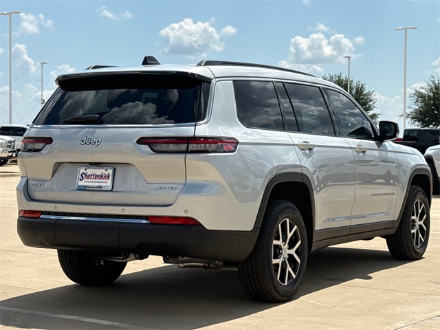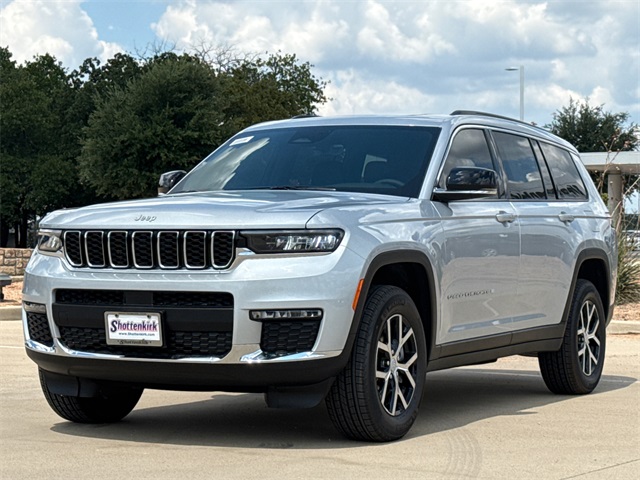 2025 Jeep Grand Cherokee L Limited 4D Sport Utility Silver Zynith 4WD 8-Speed Automatic 3.6L V6 24V VVT This vehicle comes well equipped with Grand Cherokee L Limited, 4D Sport Utility, 3.6L V6 24V VVT, 8-Speed Automatic, 4WD, Silver Zynith, and Global Black Artificial Leather Quick Order Package 22E, Grand Cherokee L Limited, 4D Sport Utility, 3.6L V6 24V VVT, 8-Speed Automatic, 4WD, Silver Zynith, Global Black Artificial Leather, 3.45 Rear Axle Ratio, 3rd row seats: split-bench, 4-Wheel Disc Brakes, 6 Speakers, ABS brakes, Active Noise Control System, Air Conditioning, Alloy wheels, AM/FM radio: SiriusXM with 360L, Anti-whiplash front head restraints, Audio memory, Auto High-beam Headlights, Automatic temperature control, Brake assist, Bumpers: body-color, Capri Leatherette Seats, Compass, Delay-off headlights, Driver door bin, Driver vanity mirror, Dual front impact airbags, Dual front side impact airbags, Dual-Pane Panoramic Sunroof, Electronic Stability Control, Emergency communication system, Four wheel independent suspension, Front anti-roll bar, Front Bucket Seats, Front Center Armrest w/Storage, Front dual zone A/C, Front fog lights, Front License Plate Bracket, Front reading lights, Fully automatic headlights, Garage door transmitter, Heated door mirrors, Heated front seats, Heated rear seats, Heated steering wheel, Illuminated entry, Interior Rear Facing Camera, Knee airbag, Low tire pressure warning, Manual Fold Seatbacks, Memory seat, Model Year Tracking, Navigation System, Normal Duty Suspension, Occupant sensing airbag, Outside temperature display, Overhead airbag, Overhead console, Panic alarm, ParkView Rear Back-Up Camera, Passenger door bin, Passenger vanity mirror, Power door mirrors, Power driver seat, Power Liftgate, Power passenger seat, Power steering, Power windows, Radio data system, Radio: Uconnect 5 Nav w/10.1" Display, Rear air conditioning, Rear anti-roll bar, Rear reading lights, Rear window defroster, Rear window wiper, Reclining 3rd row seat, Remote keyless entry, Security system, Speed control, Speed-Sensitive Wipers, Split folding rear seat, Spoiler, Steering wheel mounted audio controls, Tachometer, Telescoping steering wheel, Tilt steering wheel, Traction control, Trip computer, Turn signal indicator mirrors, Variably intermittent wipers, Voltmeter, and Wheels: 18" x 8.0" Polished/Painted Aluminum.