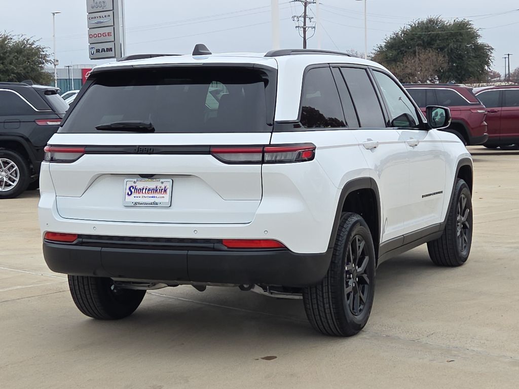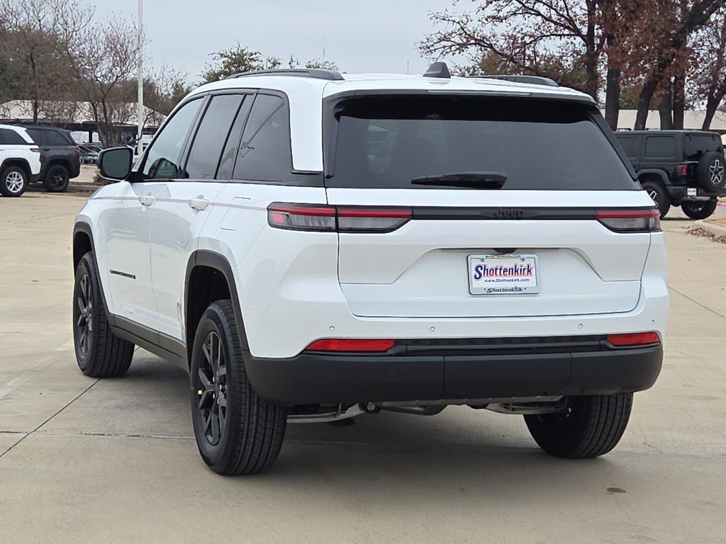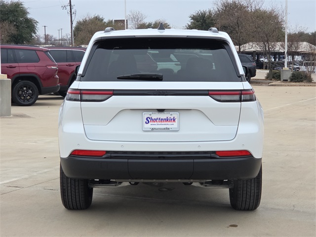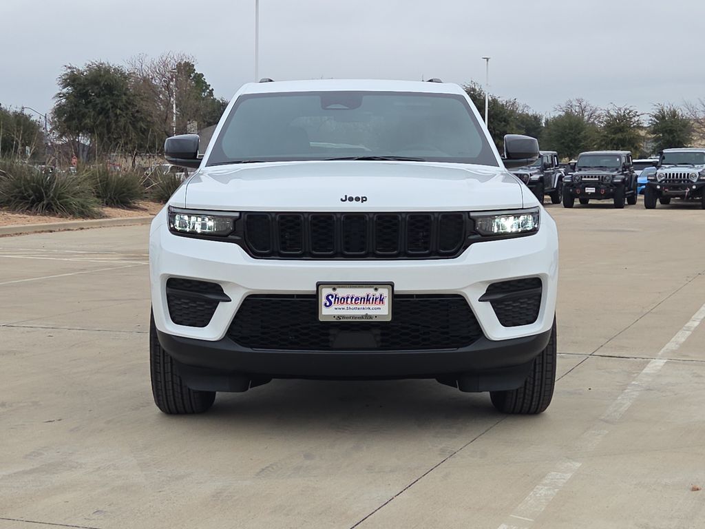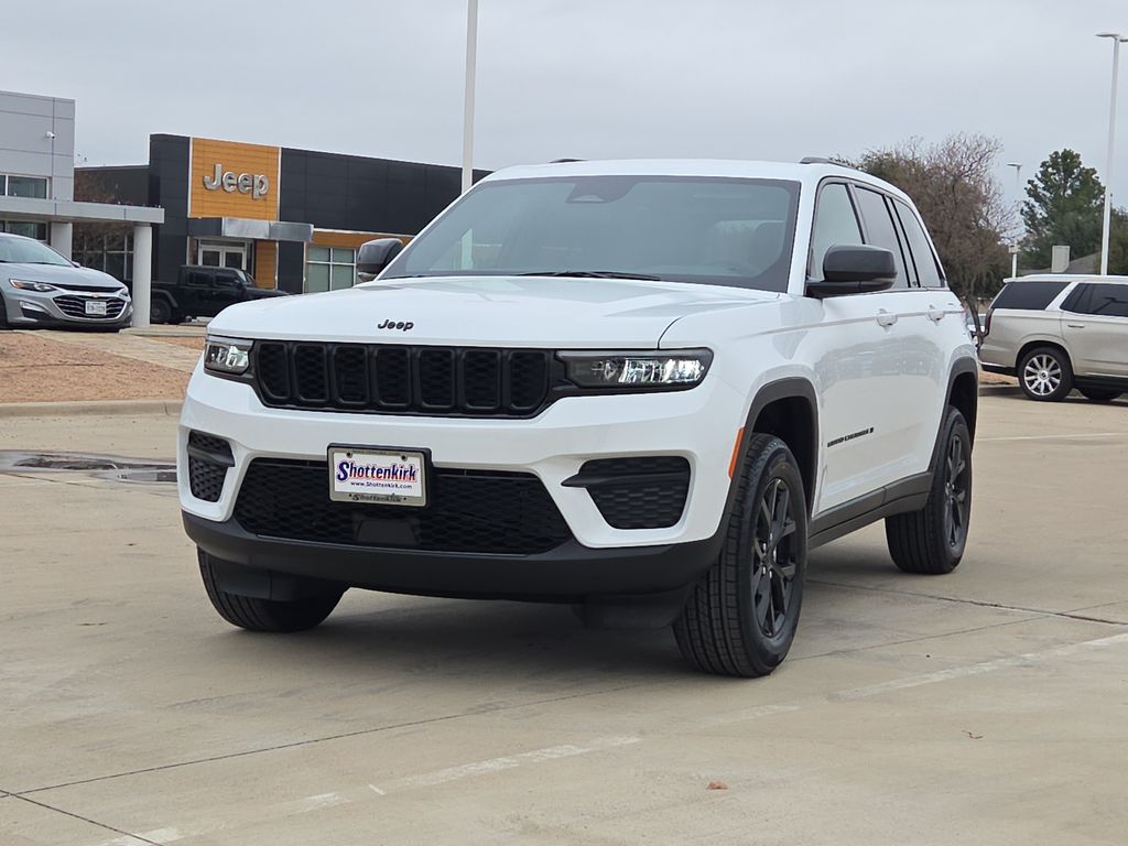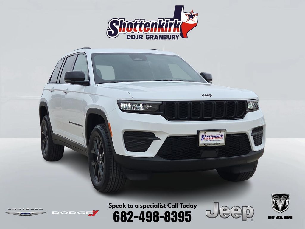 2025 Jeep Grand Cherokee Altitude 4D Sport Utility Bright White Clearcoat RWD 8-Speed Automatic 3.6L V6 24V VVT This vehicle comes well equipped with Altitude Appearance Package, Quick Order Package 23B Altitude (115V Auxiliary Power Outlet, Black Headliner, Capri Leatherette/Suede Seats, Delete Laredo Badge, Gloss Black Exterior Accents, Heated Front Seats, Heated Steering Wheel, Power Liftgate, Rain Sensitive Windshield Wipers, Remote Start System, Selectable Tire Fill Alert, Wheels: 18" x 8" Fully Painted Aluminum 1, and Wireless Charging Pad), 4-Wheel Disc Brakes, 6 Speakers, ABS brakes, Air Conditioning, Alloy wheels, AM/FM radio: SiriusXM, Anti-whiplash front head restraints, Automatic temperature control, Brake assist, Bumpers: body-color, Cloth Seats, Compass, Delay-off headlights, Driver door bin, Driver vanity mirror, Dual front impact airbags, Dual front side impact airbags, Electronic Stability Control, Emergency communication system, Four wheel independent suspension, Front anti-roll bar, Front Bucket Seats, Front Center Armrest w/Storage, Front dual zone A/C, Front License Plate Bracket, Front reading lights, Fully automatic headlights, Heated door mirrors, Illuminated entry, Knee airbag, Low tire pressure warning, Model Year Tracking, Normal Duty Suspension, Occupant sensing airbag, Outside temperature display, Overhead airbag, Overhead console, Panic alarm, ParkView Rear Back-Up Camera, Passenger door bin, Passenger vanity mirror, Power door mirrors, Power driver seat, Power steering, Power windows, Radio data system, Radio: Uconnect 5 with 8.4" Display, Rear anti-roll bar, Rear reading lights, Rear window defroster, Rear window wiper, Remote keyless entry, Security system, Speed control, Speed-Sensitive Wipers, Split folding rear seat, Spoiler, Steering wheel mounted audio controls, Tachometer, Telescoping steering wheel, Tilt steering wheel, Traction control, Trip computer, Variably intermittent wipers, Voltmeter, and Wheels: 17" x 6.5" Fully Painted Aluminum.