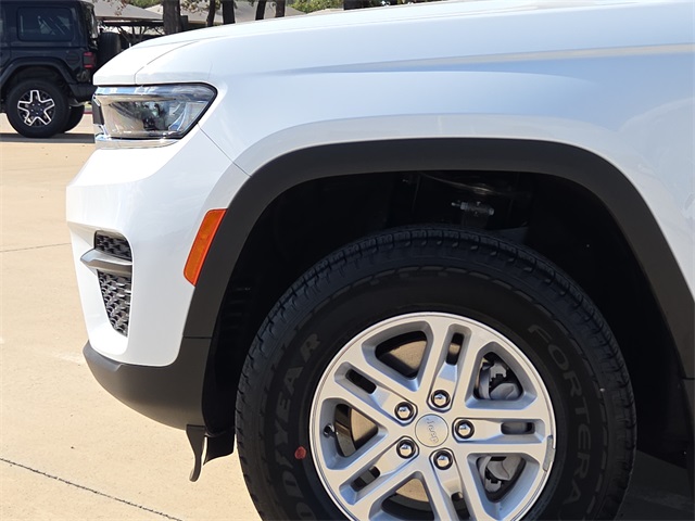 2025 Jeep Grand Cherokee Laredo 4D Sport Utility Bright White Clearcoat RWD 8-Speed Automatic 3.6L V6 24V VVT This vehicle comes well equipped with MOPAR Finishing Package (MOPAR Front Splash Guards, MOPAR Paint Protection Film, and MOPAR Rear Splash Guards with Jeep Logo), Quick Order Package 23A Laredo, 4-Wheel Disc Brakes, 6 Speakers, ABS brakes, Air Conditioning, Alloy wheels, AM/FM radio: SiriusXM, Anti-whiplash front head restraints, Automatic temperature control, Brake assist, Bumpers: body-color, Cloth Seats, Compass, Delay-off headlights, Driver door bin, Driver vanity mirror, Dual front impact airbags, Dual front side impact airbags, Electronic Stability Control, Emergency communication system, Four wheel independent suspension, Front anti-roll bar, Front Bucket Seats, Front Center Armrest w/Storage, Front dual zone A/C, Front License Plate Bracket, Front reading lights, Fully automatic headlights, Heated door mirrors, Illuminated entry, Knee airbag, Low tire pressure warning, Model Year Tracking, Normal Duty Suspension, Occupant sensing airbag, Outside temperature display, Overhead airbag, Overhead console, Panic alarm, ParkView Rear Back-Up Camera, Passenger door bin, Passenger vanity mirror, Power door mirrors, Power driver seat, Power steering, Power windows, Radio data system, Radio: Uconnect 5 with 8.4" Display, Rear anti-roll bar, Rear reading lights, Rear window defroster, Rear window wiper, Remote keyless entry, Security system, Speed control, Speed-Sensitive Wipers, Split folding rear seat, Spoiler, Steering wheel mounted audio controls, Tachometer, Telescoping steering wheel, Tilt steering wheel, Traction control, Trip computer, Variably intermittent wipers, Voltmeter, and Wheels: 17" x 6.5" Fully Painted Aluminum.
