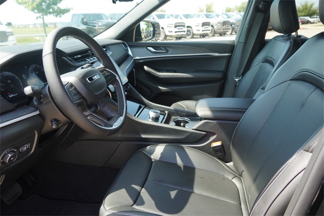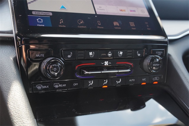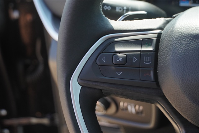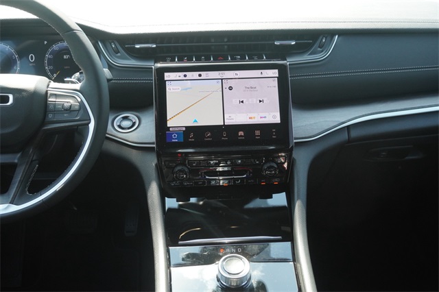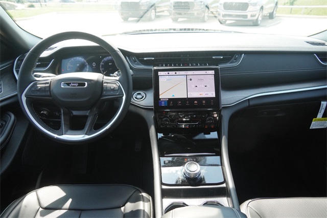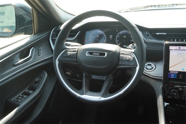 This Grand Cherokee Limited comes well equipped with Black Appearance Package (Gloss Black Exterior Accents and Wheels: 20" x 8.5" Gloss Black Painted Aluminum), Luxury Tech Group II (2nd-Row Manual Window Shades, Auto-Dimming Exterior Driver Mirror, Capri Leatherette w/Axis II Seats, Front/Rear Doors & Liftgate w/Passive Entry, Integrated Off-Road Camera, Intersection Collision Assist System, Memory Steering Column, ParkSense Front/Rear Park Assist w/Stop, Power Tilt/Telescope Steering Column, Rain Sensitive Windshield Wipers, Rear Back-Up Camera Washer, Rearview Autodim Digital Display Mirror, Surround View Camera System, Ventilated Front Seats, and Wireless Charging Pad), Quick Order Package 23E (DISC), Navigation System, 4-Wheel Disc Brakes, 6 Speakers, ABS brakes, Active Noise Control System, Air Conditioning, Alloy wheels, AM/FM radio: SiriusXM with 360L, Anti-whiplash front head restraints, Audio memory, Auto High-beam Headlights, Automatic temperature control, Brake assist, Bumpers: body-color, Capri Leatherette Seats, Compass, Delay-off headlights, Driver door bin, Driver vanity mirror, Dual front impact airbags, Dual front side impact airbags, Dual-Pane Panoramic Sunroof, Electronic Stability Control, Emergency communication system, Four wheel independent suspension, Front anti-roll bar, Front Bucket Seats, Front Center Armrest w/Storage, Front dual zone A/C, Front fog lights, Front License Plate Bracket, Front reading lights, Fully automatic headlights, Garage door transmitter, Heated door mirrors, Heated front seats, Heated rear seats, Heated steering wheel, Illuminated entry, Knee airbag, Low tire pressure warning, Memory seat, Model Year Tracking, Normal Duty Suspension, Occupant sensing airbag, Outside temperature display, Overhead airbag, Overhead console, Panic alarm, ParkView Rear Back-Up Camera, Passenger door bin, Passenger vanity mirror, Power door mirrors, Power driver seat, Power Liftgate, Power passenger seat, Power steering, Power windows, Radio data system, Radio: Uconnect 5 Nav w/10.1" Display, Rear anti-roll bar, Rear reading lights, Rear window defroster, Rear window wiper, Remote keyless entry, Security system, Speed control, Speed-Sensitive Wipers, Split folding rear seat, Spoiler, Steering wheel mounted audio controls, Tachometer, Telescoping steering wheel, Tilt steering wheel, Traction control, Trip computer, Turn signal indicator mirrors, Variably intermittent wipers, Voltmeter, and Wheels: 18" x 8" Polished/Painted Aluminum.