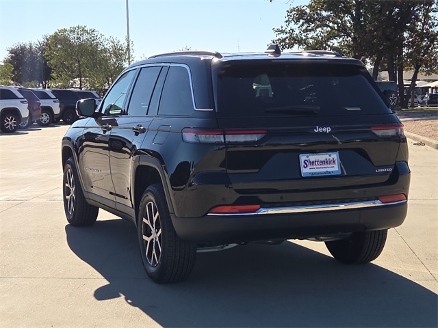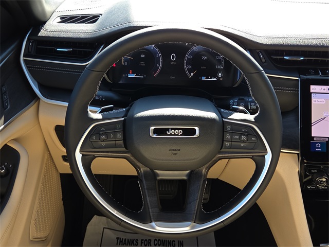 2025 Jeep Grand Cherokee Limited 4D Sport Utility Diamond Black Crystal Pearlcoat RWD 8-Speed Automatic 3.6L V6 24V VVT This vehicle comes well equipped with Quick Order Package 23E (DISC), 4-Wheel Disc Brakes, 6 Speakers, ABS brakes, Active Noise Control System, Air Conditioning, Alloy wheels, AM/FM radio: SiriusXM with 360L, Anti-whiplash front head restraints, Audio memory, Auto High-beam Headlights, Automatic temperature control, Brake assist, Bumpers: body-color, Capri Leatherette Seats, Compass, Delay-off headlights, Driver door bin, Driver vanity mirror, Dual front impact airbags, Dual front side impact airbags, Dual-Pane Panoramic Sunroof, Electronic Stability Control, Emergency communication system, Four wheel independent suspension, Front anti-roll bar, Front Bucket Seats, Front Center Armrest w/Storage, Front dual zone A/C, Front fog lights, Front License Plate Bracket, Front reading lights, Fully automatic headlights, Garage door transmitter, Heated door mirrors, Heated front seats, Heated rear seats, Heated steering wheel, Illuminated entry, Knee airbag, Low tire pressure warning, Memory seat, Model Year Tracking, Navigation System, Normal Duty Suspension, Occupant sensing airbag, Outside temperature display, Overhead airbag, Overhead console, Panic alarm, ParkView Rear Back-Up Camera, Passenger door bin, Passenger vanity mirror, Power door mirrors, Power driver seat, Power Liftgate, Power passenger seat, Power steering, Power windows, Radio data system, Radio: Uconnect 5 Nav w/10.1" Display, Rear anti-roll bar, Rear reading lights, Rear window defroster, Rear window wiper, Remote keyless entry, Security system, Speed control, Speed-Sensitive Wipers, Split folding rear seat, Spoiler, Steering wheel mounted audio controls, Tachometer, Telescoping steering wheel, Tilt steering wheel, Traction control, Trip computer, Turn signal indicator mirrors, Variably intermittent wipers, Voltmeter, and Wheels: 18" x 8" Polished/Painted Aluminum.