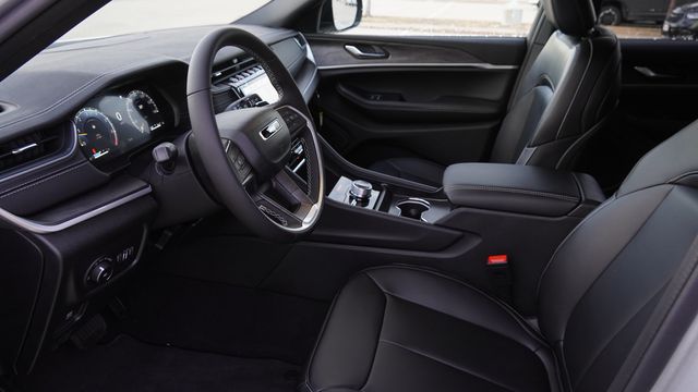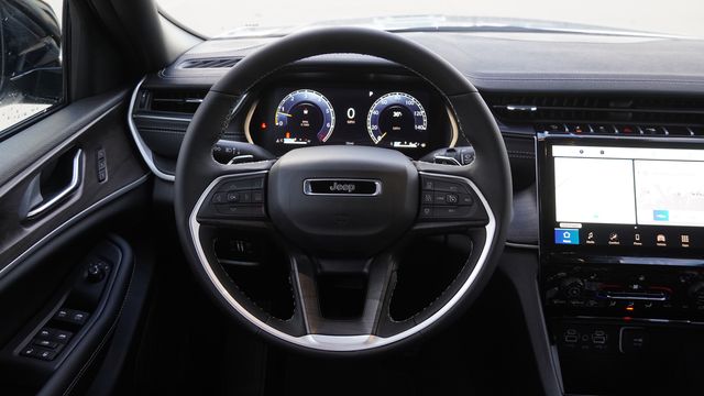 This Grand Cherokee Limited comes well equipped with Blackout Model (Black Painted Roof, Delete Limited Badge, Dual-Pane Panoramic Sunroof, Gloss Black Exterior Accents, and Wheels: 20" x 8.5" Black Painted Aluminum), Quick Order Package 23E, 4-Wheel Disc Brakes, 6 Speakers, ABS brakes, Active Noise Control System, Air Conditioning, Alloy wheels, AM/FM radio: SiriusXM with 360L, Anti-whiplash front head restraints, Audio memory, Auto High-beam Headlights, Automatic temperature control, Brake assist, Bumpers: body-color, Capri Leatherette Seats, Compass, Delay-off headlights, Driver door bin, Driver vanity mirror, Dual front impact airbags, Dual front side impact airbags, Electronic Stability Control, Emergency communication system, Four wheel independent suspension, Front anti-roll bar, Front Bucket Seats, Front Center Armrest w/Storage, Front dual zone A/C, Front fog lights, Front License Plate Bracket, Front reading lights, Fully automatic headlights, Garage door transmitter, Heated door mirrors, Heated front seats, Heated rear seats, Heated steering wheel, Illuminated entry, Knee airbag, Low tire pressure warning, Memory seat, Model Year Tracking, Navigation System, Normal Duty Suspension, Occupant sensing airbag, Outside temperature display, Overhead airbag, Overhead console, Panic alarm, ParkView Rear Back-Up Camera, Passenger door bin, Passenger vanity mirror, Power door mirrors, Power driver seat, Power Liftgate, Power passenger seat, Power steering, Power windows, Radio data system, Radio: Uconnect 5 Nav with 10.1" Display, Rear anti-roll bar, Rear reading lights, Rear window defroster, Rear window wiper, Remote keyless entry, Security system, Speed control, Speed-Sensitive Wipers, Split folding rear seat, Spoiler, Steering wheel mounted audio controls, Tachometer, Telescoping steering wheel, Tilt steering wheel, Traction control, Trip computer, Turn signal indicator mirrors, Variably intermittent wipers, Voltmeter, and Wheels: 18" x 8" Polished/Painted Aluminum.