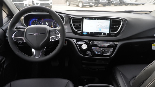 This Voyager LX comes well equipped with Quick Order Package 27E, 17" x 7" Aluminum Wheels, 3.25 Axle Ratio, 3rd row seats: split-bench, 4-Wheel Disc Brakes, 6 Speakers, ABS brakes, Air Conditioning, Alloy wheels, AM/FM radio: SiriusXM, Apple CarPlay/Android Auto, Automatic temperature control, Black Seats, Brake assist, Bumpers: body-color, Caprice Leatherette Bucket Seats, Compass, Delay-off headlights, Driver door bin, Driver vanity mirror, Driver's Seat Mounted Armrest, Dual front impact airbags, Dual front side impact airbags, Electronic Stability Control, Emergency communication system: Chrysler Connect, Four wheel independent suspension, Front anti-roll bar, Front Bucket Seats, Front dual zone A/C, Front reading lights, Fully automatic headlights, Heated door mirrors, Heated front seats, Heated steering wheel, Illuminated entry, Knee airbag, Low tire pressure warning, Occupant sensing airbag, Outside temperature display, Overhead airbag, Overhead console, Panic alarm, ParkView Rear Back-Up Camera, Passenger door bin, Passenger seat mounted armrest, Passenger vanity mirror, Power door mirrors, Power driver seat, Power Liftgate, Power steering, Power windows, Radio data system, Radio: Uconnect 5 with 10.1" Display, Rain sensing wipers, Rear air conditioning, Rear window defroster, Rear window wiper, Reclining 3rd row seat, Remote keyless entry, Security system, Speed control, Split folding rear seat, Spoiler, Steering wheel mounted audio controls, Tachometer, Telescoping steering wheel, Tilt steering wheel, Touring Suspension, Traction control, Trip computer, Turn signal indicator mirrors, Variably intermittent wipers, and Voltmeter.