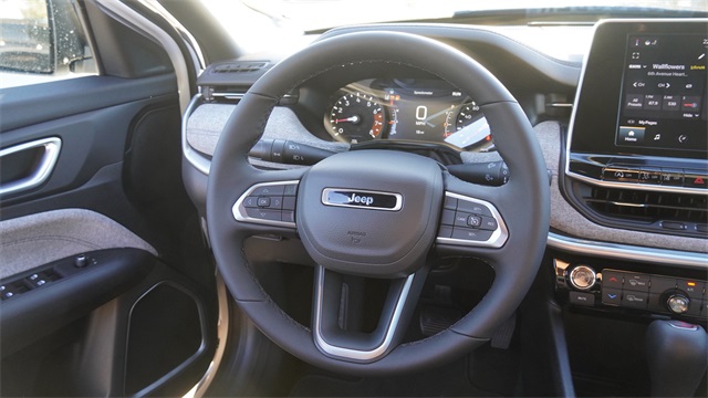This Compass North comes well equipped with ABS brakes, Alloy wheels, Compass, Electronic Stability Control, Heated door mirrors, Heated front seats, Illuminated entry, Low tire pressure warning, ParkView Rear Back-Up Camera, Passenger door bin, Remote keyless entry, Traction control, 17" x 7" Aluminum Wheels, 3.73 Final Drive Ratio, 4-Wheel Disc Brakes, 6 Speakers, Air Conditioning, AM/FM radio: SiriusXM with 360L, Anti-whiplash front head restraints, Apple CarPlay/Android Auto, Auto High-beam Headlights, Automatic temperature control, Brake assist, Bumpers: body-colour, Delay-off headlights, Driver door bin, Driver vanity mirror, Dual front impact airbags, Dual front side impact airbags, Emergency communication system: SiriusXM Guardian, Four wheel independent suspension, Front anti-roll bar, Front Bucket Seats, Front fog lights, Front reading lights, Fully automatic headlights, Heated steering wheel, Knee airbag, Leather Shift Knob, Leather steering wheel, Occupant sensing airbag, Outside temperature display, Overhead airbag, Overhead console, Panic alarm, Passenger vanity mirror, Power door mirrors, Power steering, Power windows, Premium audio system: UConnect 5, Premium Cloth/Vinyl Bucket Seats, Rear anti-roll bar, Rear window defroster, Rear window wiper, Security system, Speed control, Split folding rear seat, Spoiler, Steering wheel mounted audio controls, Tachometer, Telescoping steering wheel, Tilt steering wheel, and Variably intermittent wipers.
