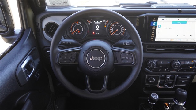 This Gladiator Sport comes well equipped with Quick Order Package 24B Sport, 110 Mph Vehicle Max Speed Calibration, 12.3" Touchscreen Display, 3.73 Rear Axle Ratio, 4-Wheel Disc Brakes, 4G LTE Wi-Fi Hot Spot, 8 Speakers, ABS brakes, Air Conditioning, Alexa Built-in, AM/FM radio: SiriusXM with 360L, Apple CarPlay, Apple CarPlay/Android Auto, Black 3-Piece Hard Top, Brake assist, Compass, Connectivity - US/Canada, Delay-off headlights, Driver door bin, Driver vanity mirror, Dual front impact airbags, Dual front side impact airbags, Electronic Stability Control, For Details, Visit DriveUconnect.com, Freedom Panel Storage Bag, Front anti-roll bar, Front Bucket Seats, Front Center Armrest w/Storage, Front fog lights, Front License Plate Bracket, Front reading lights, Google Android Auto, Illuminated entry, Integrated Center Stack Radio, Integrated roll-over protection, Low tire pressure warning, Normal Duty Suspension, Occupant sensing airbag, Outside temperature display, Overhead airbag, Panic alarm, ParkView Rear Back-Up Camera, Passenger door bin, Passenger vanity mirror, Power steering, Power windows, Radio data system, Radio: Uconnect 5 with 12.3" Display, Rear anti-roll bar, Rear reading lights, Rear Sliding Window, Rear Window Defroster, Remote keyless entry, SiriusXM Radio Service, SiriusXM with 360L, Speed control, Split folding rear seat, Steering wheel mounted audio controls, Tachometer, Telescoping steering wheel, Tilt steering wheel, Traction control, Trip computer, USB Host Flip, Variably intermittent wipers, Voltmeter, and Wheels: 17" x 7.5" Black Steel StyleD.