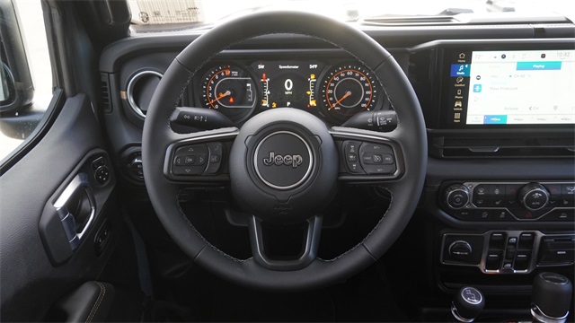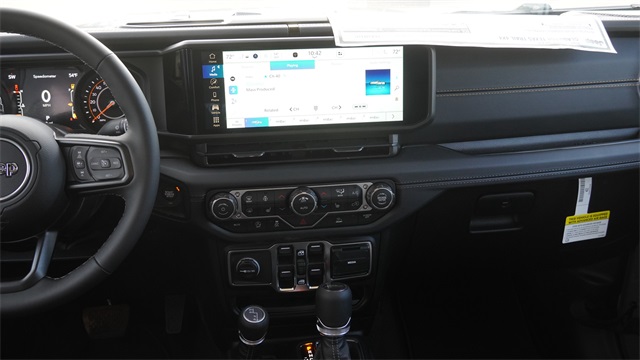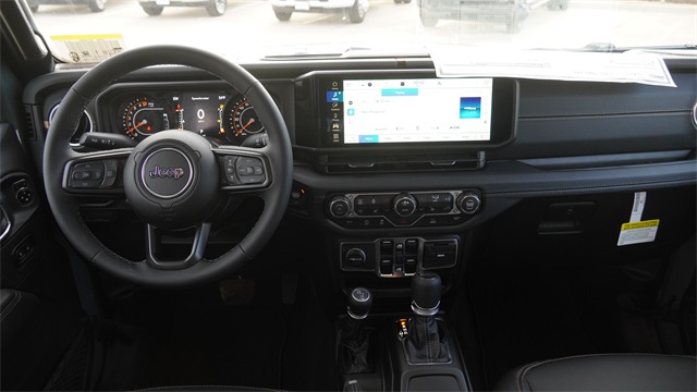 This Gladiator Texas Trail comes well equipped with Convenience Group (Air Conditioning with Auto Temp Control, Cluster 7.0" TFT Color Display, Corning Gorilla Glass, Daytime Running Lamp System, Emergency/Assistance Call, Front Door Locks 2-Door Passive Entry, Heated Front Seats, Heated Steering Wheel, Remote Start System, and Universal Garage Door Opener), LED Headlamp and Fog Lamp Group (Daytime Running Lamps LED Accents, Front LED Fog Lamps, and LED Premium Reflector Headlamps), Quick Order Package 24J Texas Trail (2-Piece Body Color Fender Flares, Advanced Brake Assist, Automatic Headlamps, Body Color 3-Piece Hard Top, Central ADAS Decision Module (CADM), Deep Tint Sunscreen Windows, Freedom Panel Storage Bag, Full Length Floor Console Premium Armrest, Full Speed Forward Collision Warning Plus, Hard Seat Back, Leather Wrapped Park Brake Handle, Leather Wrapped Shift Knob, Power 4-Way Driver Lumbar Adjust, Power 4-Way Passenger Lumbar Adjust, Power Adjust 8-Way Driver Seat, Power Adjust 8-Way Front Passenger Seat, Power Heated Mirrors, Premium Door Trim Panel, Premium McKinley Trimmed Seats, Premium Wrapped Steering Wheel, Rear Armrest with Cupholder Seat, Rear Sliding Window, Rear Window Defroster, Security Alarm, Side Steps, Sun Visors with Illuminated Vanity Mirrors, Texas Trail, Texas Trail Tailgate and Hood Decals, Wheels: 17" x 7.5" Painted Black, and Willys Suspension), 110 Mph Vehicle Max Speed Calibration, 12.3" Touchscreen Display, 3.73 Rear Axle Ratio, 4-Wheel Disc Brakes, 4G LTE Wi-Fi Hot Spot, 8 Speakers, ABS brakes, Air Conditioning, Alexa Built-in, AM/FM radio: SiriusXM with 360L, Apple CarPlay, Apple CarPlay/Android Auto, Brake assist, Compass, Connectivity - US/Canada, Delay-off headlights, Driver door bin, Driver vanity mirror, Dual front impact airbags, Dual front side impact airbags, Electronic Stability Control, Front anti-roll bar, Front Bucket Seats, Front Center Armrest w/Storage, Front fog lights, Front License Plate Bracket, Front reading lights, Google Android Auto, Illuminated entry, Integrated roll-over protection, Low tire pressure warning, Normal Duty Suspension, Occupant sensing airbag, Outside temperature display, Overhead airbag, Panic alarm, ParkView Rear Back-Up Camera, Passenger door bin, Passenger vanity mirror, Power steering, Power windows, Radio data system, Radio: Uconnect 5 with 12.3" Display, Rear anti-roll bar, Rear reading lights, Remote keyless entry, Speed control, Split folding rear seat, Steering wheel mounted audio controls, Tachometer, Telescoping steering wheel, Tilt steering wheel, Traction control, Trip computer, USB Host Flip, Variably intermittent wipers, Voltmeter, and Wheels: 17" x 7.5" Black Steel Styled.