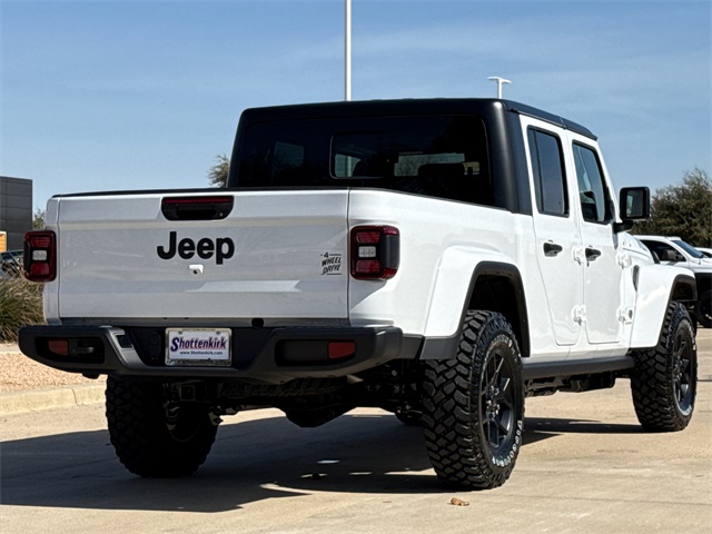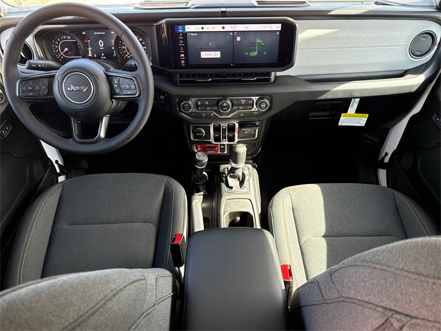 2026 Jeep Gladiator Willys 4D Crew Cab Bright White Clearcoat 4WD 8-Speed Automatic 3.6L V6 24V VVT This vehicle comes well equipped with Convenience Group (Air Conditioning with Auto Temp Control, Cluster 7.0" TFT Color Display, Corning Gorilla Glass, Daytime Running Lamp System, Emergency/Assistance Call, Front Door Locks 2-Door Passive Entry, Heated Front Seats, Heated Steering Wheel, Remote Start System, and Universal Garage Door Opener), Quick Order Package 24W Willys (2-Piece Body Color Fender Flares, 4-Wheel Drive Decal, Advanced Brake Assist, Automatic Headlamps, Auxiliary Switches, Black Grille with Gloss Black Rings, Class IV Receiver Hitch, Daytime Running Lamps LED Accents, Deep Tint Sunscreen Windows, E-Locker Rear Axle, Front Heavy Duty Red Accent Shock Absorbers, Front LED Fog Lamps, Full Speed Forward Collision Warning Plus, Heavy-Duty Engine Cooling, LED Premium Reflector Headlamps, LED Taillamps, Mold in Color Bumper with Gloss Black, MOPAR All-Weather Slush Mats, Off-Road Plus Mode, Power Heated Mirrors, Premium Wrapped Steering Wheel, Protection Sill Rails, Rear Heavy Duty Red Accent Shock Absorbers, Security Alarm, Sun Visors with Illuminated Vanity Mirrors, Trailer Hitch Zoom, Wheels: 17" x 7.5" Painted Black, Willys Hood Decal, and Willys Suspension), Gladiator Willys, 4D Crew Cab, 3.6L V6 24V VVT, 4WD, Bright White Clearcoat, and Black Cloth Convenience Group (Air Conditioning with Auto Temp Control, Cluster 7.0" TFT Color Display, Corning Gorilla Glass, Daytime Running Lamp System, Emergency/Assistance Call, Front Door Locks 2-Door Passive Entry, Heated Front Seats, Heated Steering Wheel, Remote Start System, and Universal Garage Door Opener), Quick Order Package 24W Willys (2-Piece Body Color Fender Flares, 4-Wheel Drive Decal, Advanced Brake Assist, Automatic Headlamps, Auxiliary Switches, Black Grille with Gloss Black Rings, Class IV Receiver Hitch, Daytime Running Lamps LED Accents, Deep Tint Sunscreen Windows, E-Locker Rear Axle, Front Heavy Duty Red Accent Shock Absorbers, Front LED Fog Lamps, Full Speed Forward Collision Warning Plus, Heavy-Duty Engine Cooling, LED Premium Reflector Headlamps, LED Taillamps, Mold in Color Bumper with Gloss Black, MOPAR All-Weather Slush Mats, Off-Road Plus Mode, Power Heated Mirrors, Premium Wrapped Steering Wheel, Protection Sill Rails, Rear Heavy Duty Red Accent Shock Absorbers, Security Alarm, Sun Visors with Illuminated Vanity Mirrors, Trailer Hitch Zoom, Wheels: 17" x 7.5" Painted Black, Willys Hood Decal, and Willys Suspension), Gladiator Willys, 4D Crew Cab, 3.6L V6 24V VVT, 4WD, Bright White Clearcoat, Black Cloth, 110 Mph Vehicle Max Speed Calibration, 12.3" Touchscreen Display, 3.73 Rear Axle Ratio, 4-Wheel Disc Brakes, 4G LTE Wi-Fi Hot Spot, 8 Speakers, ABS brakes, Air Conditioning, Alexa Built-in, AM/FM radio: SiriusXM with 360L, Apple CarPlay, Apple CarPlay/Android Auto, Black 3-Piece Hard Top, Brake assist, Compass, Connectivity - US/Canada, Delay-off headlights, Driver door bin, Driver vanity mirror, Dual front impact airbags, Dual front side impact airbags, Electronic Stability Control, For Details, Visit DriveUconnect.com, Freedom Panel Storage Bag, Front anti-roll bar, Front Bucket Seats, Front Center Armrest w/Storage, Front fog lights, Front License Plate Bracket, Front reading lights, Google Android Auto, Illuminated entry, Integrated Center Stack Radio, Integrated roll-over protection, Low tire pressure warning, MOPAR Spray in Bedliner, Normal Duty Suspension, Occupant sensing airbag, Outside temperature display, Overhead airbag, Panic alarm, ParkView Rear Back-Up Camera, Passenger door bin, Passenger vanity mirror, Power steering, Power windows, Radio data system, Radio: Uconnect 5 with 12.3" Display, Rear anti-roll bar, Rear reading lights, Rear Sliding Window, Rear Window Defroster, Remote keyless entry, SiriusXM Radio Service, SiriusXM with 360L, Speed control, Split folding rear seat, Steering wheel mounted audio controls, Tachomet