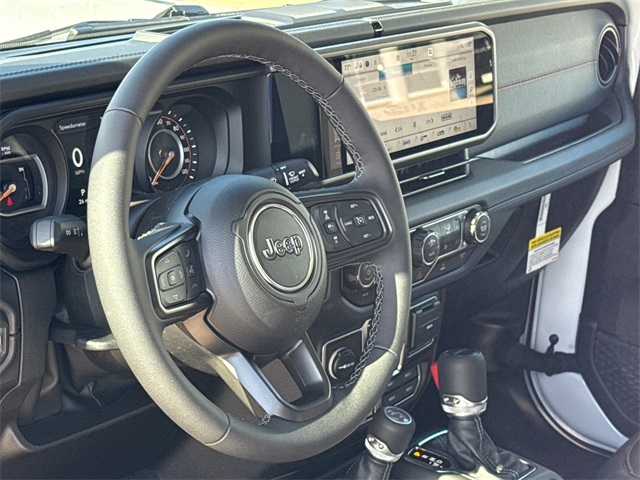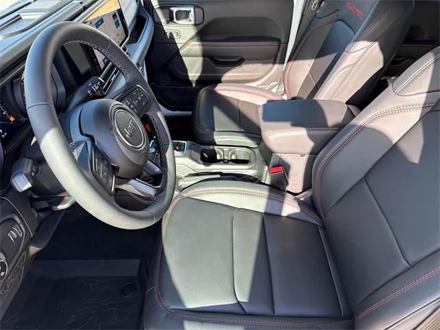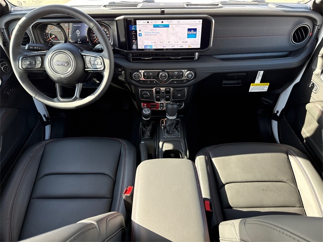 2026 Jeep Gladiator Rubicon 4D Crew Cab bright white clearcoat 4WD 8-Speed Automatic 3.6L V6 24V VVT This vehicle comes well equipped with Convenience Group (Heated Front Seats, Heated Steering Wheel, Remote Start System, and Universal Garage Door Opener), Quick Order Package 24R Rubicon, Steel Power Dome Hood Package (Power Dome Dual Vented Hood), Gladiator Rubicon, 4D Crew Cab, 3.6L V6 24V VVT, 4WD, bright white clearcoat, and Black Leather Convenience Group (Heated Front Seats, Heated Steering Wheel, Remote Start System, and Universal Garage Door Opener), Quick Order Package 24R Rubicon, Steel Power Dome Hood Package (Power Dome Dual Vented Hood), Gladiator Rubicon, 4D Crew Cab, 3.6L V6 24V VVT, 4WD, bright white clearcoat, Black Leather, 110 Mph Vehicle Max Speed Calibration, 12.3" Touchscreen Display, 4-Wheel Disc Brakes, 4.10 Rear Axle Ratio, 4G LTE Wi-Fi Hot Spot, 8 Speakers, ABS brakes, Air Conditioning, Alexa Built-in, Alloy wheels, AM/FM radio: SiriusXM with 360L, Apple CarPlay, Apple CarPlay/Android Auto, Automatic temperature control, Body Color 3-Piece Hard Top, Brake assist, Cloth Low-Back Bucket Seats, Compass, Connectivity - US/Canada, Delay-off headlights, Driver door bin, Driver vanity mirror, Dual front impact airbags, Dual front side impact airbags, Electronic Stability Control, Emergency communication system: Jeep Connect, For Details, Visit DriveUconnect.com, Freedom Panel Storage Bag, Front anti-roll bar, Front Bucket Seats, Front Center Armrest w/Storage, Front dual zone A/C, Front fog lights, Front License Plate Bracket, Front reading lights, Fully automatic headlights, Google Android Auto, Heated door mirrors, Illuminated entry, Integrated Center Stack Radio, Integrated roll-over protection, Low tire pressure warning, MOPAR All-Weather Slush Mats, MOPAR Spray in Bedliner, Occupant sensing airbag, Outside temperature display, Overhead airbag, Panic alarm, Passenger door bin, Passenger vanity mirror, Performance Suspension, Power door mirrors, Power steering, Power windows, Radio data system, Radio: Uconnect 5 with 12.3" Display, Rear anti-roll bar, Rear reading lights, Rear Sliding Window, Rear Window Defroster, Remote keyless entry, Security system, SiriusXM Radio Service, SiriusXM with 360L, Speed control, Split folding rear seat, Steering wheel mounted audio controls, Tachometer, Telescoping steering wheel, Tilt steering wheel, Traction control, Trip computer, USB Host Flip, Variably intermittent wipers, Voltmeter, Wheels: 17" x 7.5" Machined with Black Pockets, and Wheels: 17" x 7.5" Machined/Painted BlacK.