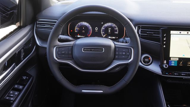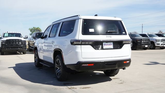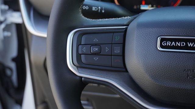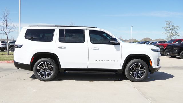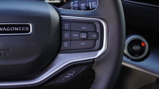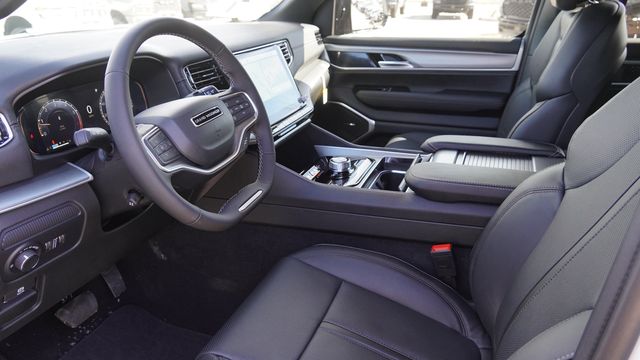 This Grand Wagoneer comes well equipped with Quick Order Package 29E Grand Wagoneer, 118 Mph Maximum Speed Calibration, 3.55 Rear Axle Ratio, 3rd row seats: bench, 4-Wheel Disc Brakes, 9 Speakers, ABS brakes, Air Conditioning, Alloy wheels, AM/FM radio: SiriusXM with 360L, Anti-whiplash front head restraints, Apple CarPlay/Android Auto, Audio memory, Auto Adjust in Reverse Exterior Mirrors, Auto High-beam Headlights, Auto-dimming door mirrors, Auto-Dimming Exterior Driver Mirror, Auto-dimming Rear-View mirror, Auto-leveling suspension, Automatic temperature control, Brake assist, Bumpers: body-color, Compass, Delay-off headlights, Driver door bin, Driver vanity mirror, Driver's Seat Mounted Armrest, Dual front impact airbags, Dual front side impact airbags, Electronic Stability Control, Emergency communication system: Jeep Connect, Exterior Mirrors Approach Lamps, Exterior Mirrors with Memory, Exterior Mirrors with Supplemental Signals, Exterior Parking Camera Rear, Four wheel independent suspension, Front anti-roll bar, Front Bucket Seats, Front Center Armrest w/Storage, Front dual zone A/C, Front fog lights, Front reading lights, Fully automatic headlights, Garage door transmitter, Heated door mirrors, Heated Exterior Mirrors, Heated front seats, Heated steering wheel, Illuminated entry, Knee airbag, Leather Trimmed Bucket Seats, Low tire pressure warning, Memory seat, Navigation System, Normal Duty Suspension, Occupant sensing airbag, Outside temperature display, Overhead airbag, Overhead console, Panic alarm, Passenger door bin, Passenger seat mounted armrest, Passenger vanity mirror, Power door mirrors, Power driver seat, Power Liftgate, Power passenger seat, Power steering, Power windows, Radio data system, Radio: Uconnect 5 Nav with 12.0" Display, Rain sensing wipers, Rear air conditioning, Rear anti-roll bar, Rear reading lights, Rear seat center armrest, Rear window defroster, Rear window wiper, Reclining 3rd row seat, Remote keyless entry, Security system, Speed control, Speed-sensing steering, Speed-Sensitive Wipers, Split folding rear seat, Steering wheel memory, Steering wheel mounted audio controls, Tachometer, Telescoping steering wheel, Tilt steering wheel, Traction control, Trip computer, Turn signal indicator mirrors, Variably intermittent wipers, Ventilated front seats, Voltmeter, and Wheels: 20" x 9" Machine Face Painted Aluminum.