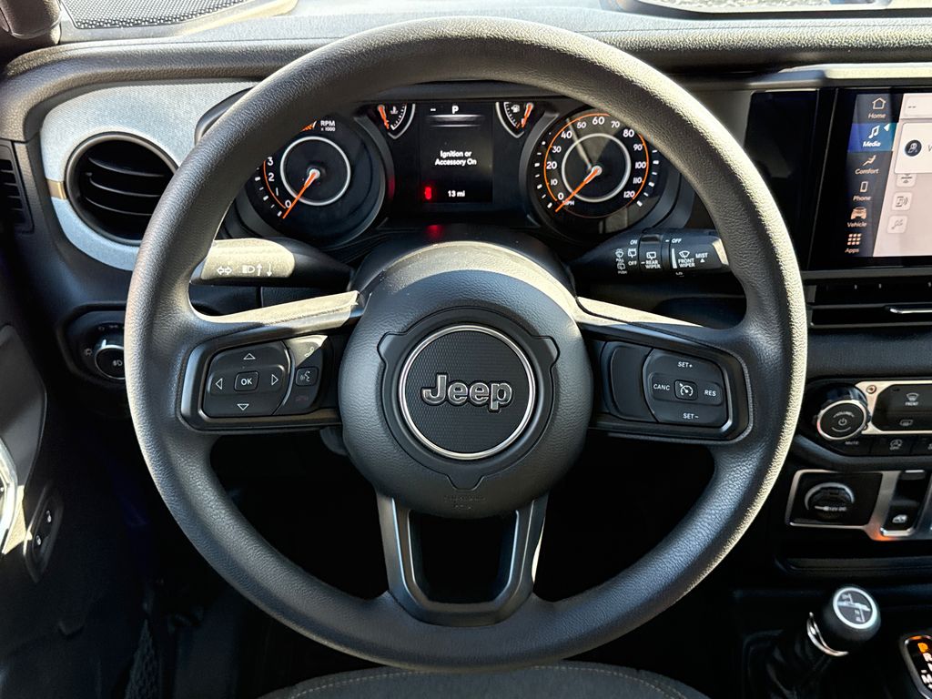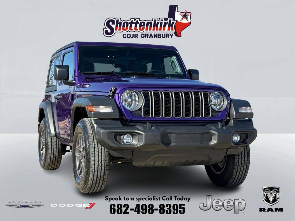 2026 Jeep Wrangler Sport 2D Sport Utility reign 4WD 8-Speed Automatic 2.0L I4 DOHC This vehicle comes well equipped with Quick Order Package 22B Sport, Wrangler Sport, 2D Sport Utility, 2.0L I4 DOHC, 4WD, reign, and Black Cloth Quick Order Package 22B Sport, Wrangler Sport, 2D Sport Utility, 2.0L I4 DOHC, 4WD, reign, Black Cloth, 12.3" Touchscreen Display, 3.45 Overall Top Gear Ratio, 4-Wheel Disc Brakes, 4G LTE Wi-Fi Hot Spot, 8 Speakers, ABS brakes, Air Conditioning, AM/FM radio: SiriusXM with 360L, Apple CarPlay, Apple CarPlay/Android Auto, Aux Battery, Black 3-Piece Hard Top, Brake assist, Cloth Low-Back Bucket Seats, Compass, Connectivity - US/Canada, Deep Tint Sunscreen Windows, Delay-off headlights, Driver door bin, Driver vanity mirror, Dual front impact airbags, Dual front side impact airbags, Electronic Stability Control, For More Info, Call 800-643-2112, Freedom Panel Storage Bag, Front anti-roll bar, Front Bucket Seats, Front Center Armrest w/Storage, Front fog lights, Front reading lights, Google Android Auto, Illuminated entry, Integrated Center Stack Radio, Integrated roll-over protection, Low tire pressure warning, MOPAR All-Weather Floor Mats, Non-Lock Fuel Cap Without Discriminator, Normal Duty Suspension, Occupant sensing airbag, Outside temperature display, Overhead airbag, Panic alarm, ParkView Rear Back-Up Camera, Passenger door bin, Passenger vanity mirror, Power steering, Power windows, Radio data system, Radio: Uconnect 5 with 12.3" Display, Rear anti-roll bar, Rear reading lights, Rear Window Defroster, Rear Window Wiper/Washer, Remote keyless entry, SiriusXM Radio Service, SiriusXM with 360L, Speed control, Steering wheel mounted audio controls, Stop-Start Dual Battery System, Tachometer, Telescoping steering wheel, Tilt steering wheel, Traction control, Trip computer, Variably intermittent wipers, Wheels: 17" x 7.5" Black Steel Styled, and Wheels: 17" x 7.5" Gray.