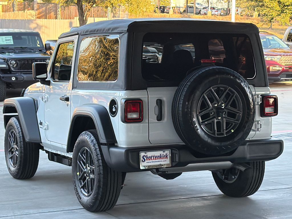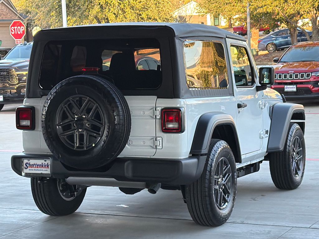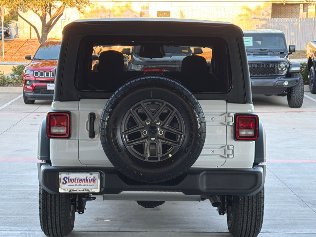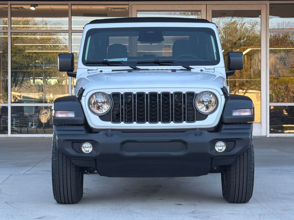 2026 Jeep Wrangler Sport S 2D Sport Utility Bright White Clearcoat 4WD 8-Speed Automatic 2.0L I4 DOHC This vehicle comes well equipped with Convenience Group (2-Door Passive Entry, Front Door Locks, Air Conditioning with Auto Temp Control, Air Filtering, Cluster 7.0" TFT Color Display, Emergency/Assistance Call, Heated Front Seats, Heated Steering Wheel, and Universal Garage Door Opener), Quick Order Package 22S Sport S (Advanced Brake Assist, Automatic Headlamps, Corning Gorilla Glass, Deep Tint Sunscreen Windows, Enhanced Adaptive Cruise Control, Full Speed Forward Collision Warning Plus, Power Heated Mirrors, Premium Wrapped Steering Wheel, Security Alarm, Sun Visors with Illuminated Vanity Mirrors, and Wheels: 17" x 7.5" Gray), Wrangler Sport S, 2D Sport Utility, 2.0L I4 DOHC, 4WD, Bright White Clearcoat, and Black Cloth Convenience Group (2-Door Passive Entry, Front Door Locks, Air Conditioning with Auto Temp Control, Air Filtering, Cluster 7.0" TFT Color Display, Emergency/Assistance Call, Heated Front Seats, Heated Steering Wheel, and Universal Garage Door Opener), Quick Order Package 22S Sport S (Advanced Brake Assist, Automatic Headlamps, Corning Gorilla Glass, Deep Tint Sunscreen Windows, Enhanced Adaptive Cruise Control, Full Speed Forward Collision Warning Plus, Power Heated Mirrors, Premium Wrapped Steering Wheel, Security Alarm, Sun Visors with Illuminated Vanity Mirrors, and Wheels: 17" x 7.5" Gray), Wrangler Sport S, 2D Sport Utility, 2.0L I4 DOHC, 4WD, Bright White Clearcoat, Black Cloth, 12.3" Touchscreen Display, 3.45 Overall Top Gear Ratio, 4-Wheel Disc Brakes, 4G LTE Wi-Fi Hot Spot, 8 Speakers, ABS brakes, Air Conditioning, AM/FM radio: SiriusXM with 360L, Apple CarPlay, Apple CarPlay/Android Auto, Aux Battery, Brake assist, Cloth Low-Back Bucket Seats, Compass, Connectivity - US/Canada, Delay-off headlights, Driver door bin, Driver vanity mirror, Dual front impact airbags, Dual front side impact airbags, Electronic Stability Control, For More Info, Call 800-643-2112, Front anti-roll bar, Front Bucket Seats, Front Center Armrest w/Storage, Front fog lights, Front reading lights, Google Android Auto, Illuminated entry, Integrated Center Stack Radio, Integrated roll-over protection, Low tire pressure warning, MOPAR All-Weather Floor Mats, Non-Lock Fuel Cap Without Discriminator, Normal Duty Suspension, Occupant sensing airbag, Outside temperature display, Overhead airbag, Panic alarm, ParkView Rear Back-Up Camera, Passenger door bin, Passenger vanity mirror, Power steering, Power windows, Radio data system, Radio: Uconnect 5 with 12.3" Display, Rear anti-roll bar, Rear reading lights, Remote keyless entry, SiriusXM Radio Service, SiriusXM with 360L, Speed control, Steering wheel mounted audio controls, Stop-Start Dual Battery System, Tachometer, Telescoping steering wheel, Tilt steering wheel, Traction control, Trip computer, Variably intermittent wipers, and Wheels: 17" x 7.5" Black Steel Styled.