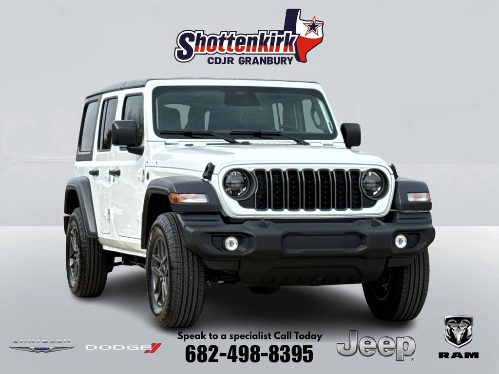 2026 Jeep Wrangler Sport S 4D Sport Utility Bright White Clearcoat 4WD 8-Speed Automatic 3.6L V6 24V VVT This vehicle comes well equipped with Convenience Group (2-Door Passive Entry, Front Door Locks, Air Conditioning with Auto Temp Control, Air Filtering, Cluster 7.0" TFT Color Display, Emergency/Assistance Call, Heated Front Seats, Heated Steering Wheel, and Universal Garage Door Opener), LED Headlamp and Fog Lamp Group (Front LED Fog Lamps and LED Premium Reflector Headlamps), Quick Order Package 24S Sport S (Advanced Brake Assist, Automatic Headlamps, Corning Gorilla Glass, Deep Tint Sunscreen Windows, Enhanced Adaptive Cruise Control, Full Speed Forward Collision Warning Plus, Power Heated Mirrors, Premium Wrapped Steering Wheel, Security Alarm, Sun Visors with Illuminated Vanity Mirrors, and Wheels: 17" x 7.5" Gray), 12.3" Touchscreen Display, 3.45 Overall Top Gear Ratio, 4-Wheel Disc Brakes, 4G LTE Wi-Fi Hot Spot, 8 Speakers, ABS brakes, Air Conditioning, Alpine Premium Audio System, AM/FM radio: SiriusXM with 360L, Apple CarPlay, Apple CarPlay/Android Auto, Aux Battery, Black 3-Piece Hard Top, Brake assist, Compass, Connectivity - US/Canada, Delay-off headlights, Driver door bin, Driver vanity mirror, Dual front impact airbags, Dual front side impact airbags, Electronic Stability Control, For More Info, Call 800-643-2112, Freedom Panel Storage Bag, Front anti-roll bar, Front Bucket Seats, Front Center Armrest w/Storage, Front fog lights, Front reading lights, Google Android Auto, Illuminated entry, Integrated Center Stack Radio, Integrated roll-over protection, Low tire pressure warning, MOPAR All-Weather Floor Mats, No Soft Top, Non-Lock Fuel Cap Without Discriminator, Normal Duty Suspension, Occupant sensing airbag, Outside temperature display, Overhead airbag, Panic alarm, ParkView Rear Back-Up Camera, Passenger door bin, Passenger vanity mirror, Power steering, Power windows, Radio data system, Radio: Uconnect 5 with 12.3" Display, Rear anti-roll bar, Rear reading lights, Rear Window Defroster, Rear Window Wiper/Washer, Remote keyless entry, SiriusXM Radio Service, SiriusXM with 360L, Speed control, Split folding rear seat, Steering wheel mounted audio controls, Stop-Start Dual Battery System, Tachometer, Telescoping steering wheel, Tilt steering wheel, Traction control, Trip computer, Variably intermittent wipers, and Wheels: 17" x 7.5" Black Steel Styled.