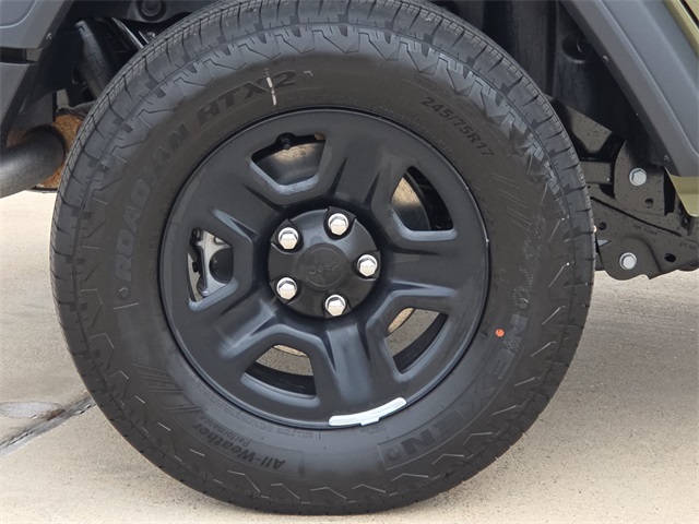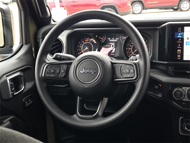 2026 Jeep Wrangler Sport 4D Sport Utility 41 4WD 8-Speed Automatic 3.6L V6 24V VVT This vehicle comes well equipped with Quick Order Package 24B Sport, 3.45 Overall Top Gear Ratio, 4-Wheel Disc Brakes, 8 Speakers, ABS brakes, Air Conditioning, AM/FM radio: SiriusXM with 360L, Apple CarPlay/Android Auto, Aux Battery, Black 3-Piece Hard Top, Brake assist, Cloth Low-Back Bucket Seats, Compass, Deep Tint Sunscreen Windows, Delay-off headlights, Driver door bin, Driver vanity mirror, Dual front impact airbags, Dual front side impact airbags, Electronic Stability Control, Engine Oil Cooler, Freedom Panel Storage Bag, Front anti-roll bar, Front Bucket Seats, Front Center Armrest w/Storage, Front fog lights, Front reading lights, Illuminated entry, Integrated roll-over protection, Low tire pressure warning, MOPAR All-Weather Floor Mats, Normal Duty Suspension, Occupant sensing airbag, Outside temperature display, Overhead airbag, Panic alarm, ParkView Rear Back-Up Camera, Passenger door bin, Passenger vanity mirror, Power steering, Power windows, Radio data system, Rear anti-roll bar, Rear reading lights, Rear Window Defroster, Rear Window Wiper/Washer, Remote keyless entry, Speed control, Split folding rear seat, Steering wheel mounted audio controls, Stop-Start Dual Battery System, Tachometer, Telescoping steering wheel, Tilt steering wheel, Traction control, Trip computer, Variably intermittent wipers, and Wheels: 17" x 7.5" Black Steel Styled.