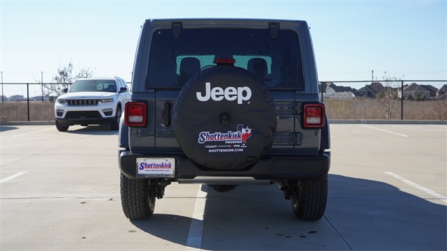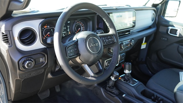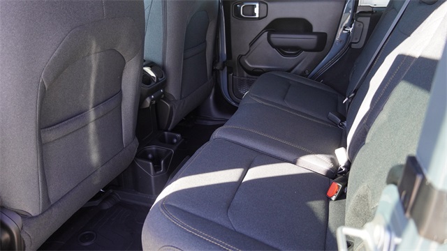 This Wrangler Sport S comes well equipped with Convenience Group (2-Door Passive Entry, Front Door Locks, Air Conditioning with Auto Temp Control, Air Filtering, Cluster 7.0" TFT Color Display, Emergency/Assistance Call, Heated Front Seats, Heated Steering Wheel, and Universal Garage Door Opener), LED Headlamp and Fog Lamp Group (Front LED Fog Lamps and LED Premium Reflector Headlamps), Quick Order Package 24S Sport S (Advanced Brake Assist, Automatic Headlamps, Corning Gorilla Glass, Deep Tint Sunscreen Windows, Enhanced Adaptive Cruise Control, Full Speed Forward Collision Warning Plus, Power Heated Mirrors, Premium Wrapped Steering Wheel, Security Alarm, Sun Visors with Illuminated Vanity Mirrors, and Wheels: 17" x 7.5" Gray), 12.3" Touchscreen Display, 3.45 Overall Top Gear Ratio, 4-Wheel Disc Brakes, 4G LTE Wi-Fi Hot Spot, 8 Speakers, ABS brakes, Air Conditioning, AM/FM radio: SiriusXM with 360L, Apple CarPlay, Apple CarPlay/Android Auto, Aux Battery, Brake assist, Compass, Connectivity - US/Canada, Delay-off headlights, Driver door bin, Driver vanity mirror, Dual front impact airbags, Dual front side impact airbags, Electronic Stability Control, For More Info, Call 800-643-2112, Front anti-roll bar, Front Bucket Seats, Front Center Armrest w/Storage, Front fog lights, Front reading lights, Google Android Auto, Illuminated entry, Integrated Center Stack Radio, Integrated roll-over protection, Low tire pressure warning, MOPAR All-Weather Floor Mats, Non-Lock Fuel Cap Without Discriminator, Normal Duty Suspension, Occupant sensing airbag, Outside temperature display, Overhead airbag, Panic alarm, ParkView Rear Back-Up Camera, Passenger door bin, Passenger vanity mirror, Power steering, Power Top Quarter Window Storage Bag, Power windows, Radio data system, Radio: Uconnect 5 with 12.3" Display, Rear anti-roll bar, Rear reading lights, Rear Window Defroster, Rear Window Wiper/Washer, Remote keyless entry, Removable Rear Quarter Windows, SiriusXM Radio Service, SiriusXM with 360L, Sky One-Touch Power Top, Speed control, Split folding rear seat, Steering wheel mounted audio controls, Stop-Start Dual Battery System, Tachometer, Telescoping steering wheel, Tilt steering wheel, Traction control, Trip computer, Variably intermittent wipers, and Wheels: 17" x 7.5" Black Steel Styled.
