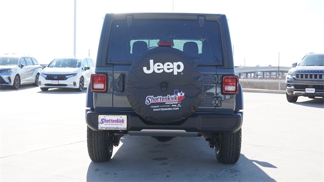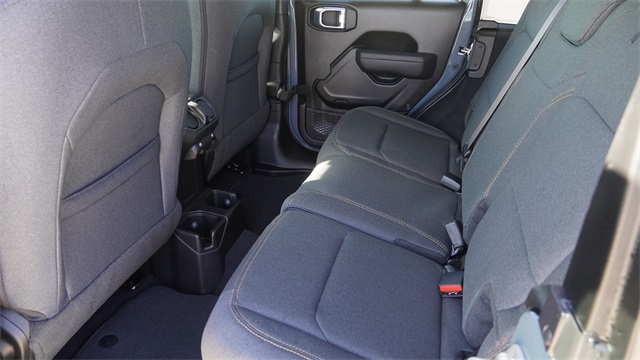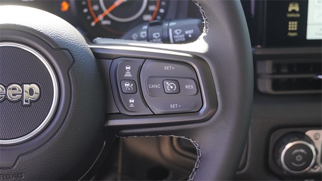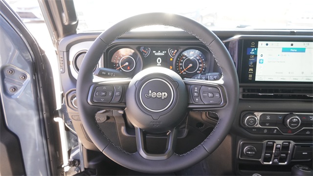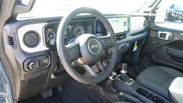 This Wrangler Sport S comes well equipped with LED Headlamp and Fog Lamp Group (Front LED Fog Lamps and LED Premium Reflector Headlamps), Quick Order Package 22S Sport S (Advanced Brake Assist, Automatic Headlamps, Corning Gorilla Glass, Deep Tint Sunscreen Windows, Enhanced Adaptive Cruise Control, Full Speed Forward Collision Warning Plus, Power Heated Mirrors, Premium Wrapped Steering Wheel, Security Alarm, Sun Visors with Illuminated Vanity Mirrors, and Wheels: 17" x 7.5" Gray), 12.3" Touchscreen Display, 3.45 Overall Top Gear Ratio, 4-Wheel Disc Brakes, 4G LTE Wi-Fi Hot Spot, 8 Speakers, ABS brakes, Air Conditioning, AM/FM radio: SiriusXM with 360L, Apple CarPlay, Apple CarPlay/Android Auto, Aux Battery, Black 3-Piece Hard Top, Brake assist, Compass, Connectivity - US/Canada, Delay-off headlights, Driver door bin, Driver vanity mirror, Dual front impact airbags, Dual front side impact airbags, Electronic Stability Control, For More Info, Call 800-643-2112, Freedom Panel Storage Bag, Front anti-roll bar, Front Bucket Seats, Front Center Armrest w/Storage, Front fog lights, Front reading lights, Google Android Auto, Illuminated entry, Integrated Center Stack Radio, Integrated roll-over protection, Low tire pressure warning, No Soft Top, Non-Lock Fuel Cap Without Discriminator, Normal Duty Suspension, Occupant sensing airbag, Outside temperature display, Overhead airbag, Panic alarm, ParkView Rear Back-Up Camera, Passenger door bin, Passenger vanity mirror, Power steering, Power windows, Radio data system, Radio: Uconnect 5 with 12.3" Display, Rear anti-roll bar, Rear reading lights, Rear Window Defroster, Rear Window Wiper/Washer, Remote keyless entry, SiriusXM Radio Service, SiriusXM with 360L, Speed control, Split folding rear seat, Steering wheel mounted audio controls, Stop-Start Dual Battery System, Tachometer, Telescoping steering wheel, Tilt steering wheel, Traction control, Trip computer, Variably intermittent wipers, and Wheels: 17" x 7.5" Black Steel Styled.