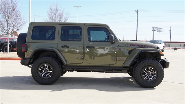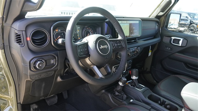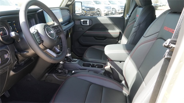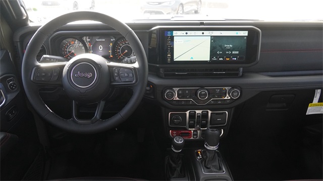 This Wrangler Rubicon X comes well equipped with Quick Order Package 24Y Rubicon X (12.3" Touchscreen Display, 4G LTE Wi-Fi Hot Spot, Acoustic Front Seat Area Carpet, Acoustic Laminated Front Door Glass, Alpine Premium Audio System, Apple CarPlay, Auto High Beam Headlamp Control, Auto-Dimming Rear-View Mirror, Blind Spot and Cross Path Detection, Body Color 3-Piece Hard Top, Body Color Rubicon Highline Flare, Connected Travel and Traffic Services, Connectivity - US/Canada, Freedom Panel Storage Bag, Google Android Auto, HD Radio, Heated Front Seats, Heated Steering Wheel, Integrated Off-Road Camera, Integrated Voice Command with Bluetooth, Leather Wrapped Park Brake Handle, Leather Wrapped Shift Knob, MOPAR Hardtop Headliner, Nappa Leather Seats, No Soft Top, ParkSense Rear Park Assist System, Power 4-Way Driver Lumbar Adjust, Power 4-Way Passenger Lumbar Adjust, Power Adjust 8-Way Driver Seat, Power Adjust 8-Way Front Passenger Seat, Premium Door Trim Panel, Radio: Uconnect 5 Navigation with 12.3" Display, Rear Window Defroster, Rear Window Wiper/Washer, SiriusXM with 360L, Steel Front Bumper, Steel Rear Bumper, and Universal Garage Door Opener), Steel Performance Hood Package (Performance Hood), Trailer Tow and Auxiliary Switch Group (Auxiliary Switches and Class II Receiver Hitch), Trailer Tow Prep Package, 35" Tire Suspension, 4-Wheel Disc Brakes, 8 Speakers, ABS brakes, Air Conditioning, Alloy wheels, AM/FM radio: SiriusXM with 360L, Apple CarPlay/Android Auto, Automatic temperature control, Aux Battery, Brake assist, Cloth Low-Back Bucket Seats, Compass, Delay-off headlights, Driver door bin, Driver vanity mirror, Dual front impact airbags, Dual front side impact airbags, Electronic Stability Control, Emergency communication system: Jeep Connect, For More Info, Call 800-643-2112, Front anti-roll bar, Front Bucket Seats, Front Center Armrest w/Storage, Front dual zone A/C, Front fog lights, Front License Plate Bracket, Front reading lights, Fully automatic headlights, Heated door mirrors, Illuminated entry, Integrated Center Stack Radio, Integrated roll-over protection, Low tire pressure warning, MOPAR All-Weather Floor Mats, MOPAR Hinge-Gate Reinforcement, Non-Lock Fuel Cap Without Discriminator, Occupant sensing airbag, Outside temperature display, Overhead airbag, Panic alarm, ParkView Rear Back-Up Camera, Passenger door bin, Passenger vanity mirror, Performance Suspension, Power door mirrors, Power steering, Power windows, Radio data system, Radio: Uconnect 5 with 12.3" Display, Rear anti-roll bar, Rear reading lights, Remote keyless entry, Security system, SiriusXM Radio Service, Speed control, Split folding rear seat, Steering wheel mounted audio controls, Stop-Start Dual Battery System, Tachometer, Telescoping steering wheel, Tilt steering wheel, Traction control, Trip computer, Variably intermittent wipers, Voltmeter, Wheels: 17" x 7.5" Machined/Painted Black, and Wheels: 17" x 8" Machined with Black Pockets.