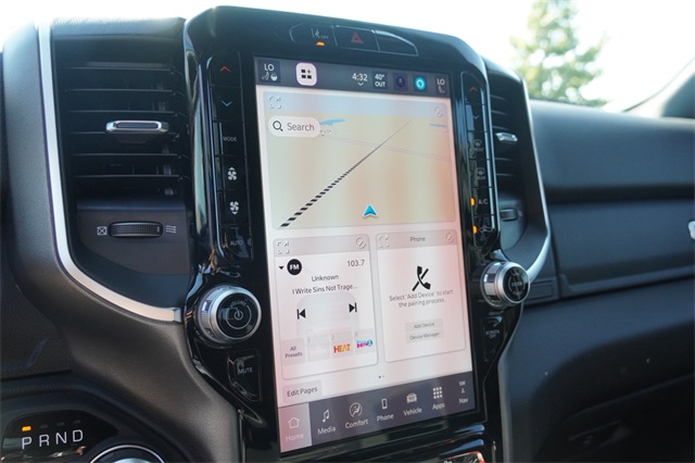 This 1500 Big Horn/Lone Star comes well equipped with Big Horn Level 2 Equipment Group (12" Touchscreen Display, 4G LTE Wi-Fi Hot Spot, Auto-Dimming Rear-View Mirror, Body Color Fender Flares, Configurable Drive Mode, Disassociated Touchscreen Display, GPS Navigation, Heated Front Seats, Heated Steering Wheel, Power Adjustable Pedals, Rear Power Sliding Window, Rear Window Defroster, Remote Tailgate Release, Steering Wheel Mounted Audio Controls, 115V Auxiliary Power Outlet, 115V Auxiliary Rear Power Outlet, 3 Rear Seat Head Restraints, 4 Way Front Headrests, 400W Inverter, Apple CarPlay, Auto Power-Folding Mirrors, Auto-Dimming Exterior Driver Mirror, Black Exterior Mirrors, Black Premium Power Mirrors, Bucket Seats, Center Console Parts Module, Cluster 7.0" TFT Color Display, Connectivity - US/Canada, Convex Wide-Angle Exterior Mirror Insert, Deluxe Cloth Bucket Seats, Exterior Mirrors Courtesy Lamps, Front Seat Back Map Pockets, Full Length Floor Console, Glove Box Lamp, Google Android Auto, GPS Antenna Input, HD Radio, Integrated Center Stack Radio, Leather Wrapped Steering Wheel, LED Footwell Lighting, Manual Adjust 4-Way Front Passenger Seat, Overhead LED Lamps, Power 2-Way Driver Lumbar Adjust, Power Adjust 8-Way Driver Seat, Premium Overhead Console, Rear 60/40 Folding Seat, Rear Center Armrest, Security Alarm, SiriusXM Radio Service, and USB Host Flip), Night Edition (Accent Color Door Handles, Anti-Spin Differential Rear Axle, Black Headlamp Bezels, Black Interior Accents, Black Tail Lamp Bezels, Body Color Front Bumper, Grille Black Surround Black Mesh, RAM Grille Badge - Black, Wheels: 20" x 9.0" Aluminum Painted Clad, Accent Color Premium Power Mirrors, Accent Color Tailgate Handle, Black Exterior Truck Badging, and Black Painted Exterior Mirrors Caps), 1500 Big Horn/Lone Star, 4D Crew Cab, 3.0L I6, 8-Speed Automatic, 4WD, Forged Blue Metallic, Black Cloth, Lone Star Badge, 4-Wheel Disc Brakes, 6 Speakers, ABS brakes, Air Conditioning, Alloy wheels, AM/FM radio, Apple CarPlay/Android Auto, Auto High-beam Headlights, Brake assist, Bumpers: chrome, Cloth Bucket Seats, Compass, Delay-off headlights, Driver door bin, Dual front impact airbags, Dual front side impact airbags, Electronic Stability Control, Front anti-roll bar, Front Bucket Seats, Front Center Armrest w/Storage, Front fog lights, Front License Plate Bracket, Front reading lights, Front wheel independent suspension, Fully automatic headlights, Heated door mirrors, Illuminated entry, Low tire pressure warning, Manual Adjust 4-Way Driver Seat, Manual Folding Exterior Mirrors, Occupant sensing airbag, Outside temperature display, Overhead airbag, Overhead console, Panic alarm, ParkView Rear Back-Up Camera, Passenger door bin, Passenger vanity mirror, Power door mirrors, Power steering, Power windows, Radio data system, Rear anti-roll ba Price includes: $1000 - 2026 Central BC Retail Bonus Cash . Exp. 01/05/2026 $3500 - 2026 National Retail Consumer