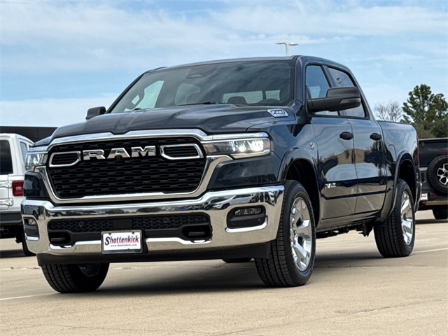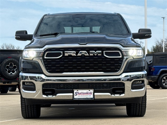 2026 Ram 1500 Big Horn/Lone Star 4D Crew Cab Blue 4WD 8-Speed Automatic HEMI 5.7L V8 Multi Displacement VVT eTorque This vehicle comes well equipped with Big Horn Level 2 Equipment Group (115V Auxiliary Power Outlet, 115V Auxiliary Rear Power Outlet, 12" Touchscreen Display, 2nd Row in Floor Storage Bins, 3 Rear Seat Head Restraints, 4 Way Front Headrests, 400W Inverter, 4G LTE Wi-Fi Hot Spot, 9 Amplified Speakers with Subwoofer, Air Conditioning ATC with Dual Zone Control, Apple CarPlay, Auto Power-Folding Mirrors, Auto-Dimming Exterior Driver Mirror, Auto-Dimming Rear-View Mirror, Black Exterior Mirrors, Black Premium Power Mirrors, Body Color Fender Flares, Bucket Seats, Center Console Parts Module, Cluster 7.0" TFT Color Display, Configurable Drive Mode, Connected Travel and Traffic Services, Connectivity - US/Canada, Convex Wide-Angle Exterior Mirror Insert, Deluxe Cloth Bucket Seats, Disassociated Touchscreen Display, Exterior Mirrors Courtesy Lamps, Exterior Mirrors with Heating Element, Exterior Mirrors with Supplemental Signals, Front Seat Back Map Pockets, Full Length Floor Console, Global Telematics Box Module, Glove Box Lamp, Google Android Auto, GPS Antenna Input, GPS Navigation, HD Radio, Heated Front Seats, Heated Steering Wheel, Integrated Center Stack Radio, Integrated Voice Command with Bluetooth, Leather Wrapped Steering Wheel, LED Dome Lamp with on/Off Switch, LED Footwell Lighting, Manual Adjust 4-Way Front Passenger Seat, Media Hub with 2 Charge Only USBs, Overhead LED Lamps, Power 2-Way Driver Lumbar Adjust, Power Adjust 8-Way Driver Seat, Power Adjustable Pedals, Premium Overhead Console, Radio: Uconnect 5 Navigation with 12.0" Display, Rear 60/40 Folding Seat, Rear Center Armrest, Rear Power Sliding Window, Rear Window Defroster, Remote Tailgate Release, Security Alarm, SiriusXM Radio Service, SiriusXM with 360L, Steering Wheel Mounted Audio Controls, Sun Visors with Illuminated Vanity Mirrors, Universal Garage Door Opener, USB Host Flip, and Wheels: 20" x 9" Aluminum Chrome Clad), Protection Group (Tow Hooks), 1500 Big Horn/Lone Star, 4D Crew Cab, HEMI 5.7L V8 Multi Displacement VVT eTorque, 4WD, Blue, and Black Cloth Big Horn Level 2 Equipment Group