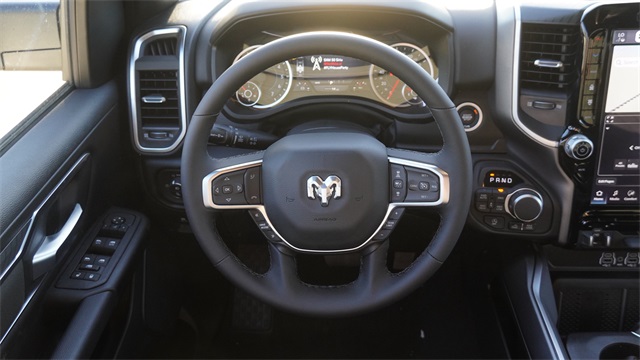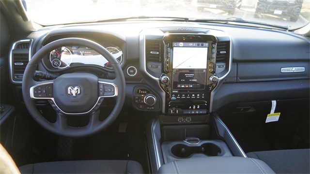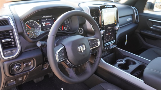 This 1500 Big Horn/Lone Star comes well equipped with Night Edition (Accent Color Door Handles, Accent Color Premium Power Mirrors, Accent Color Tailgate Handle, Anti-Spin Differential Rear Axle, Auto Power-Folding Mirrors, Auto-Dimming Exterior Driver Mirror, Black Exterior Truck Badging, Black Headlamp Bezels, Black Interior Accents, Black Painted Exterior Mirrors Caps, Black Tail Lamp Bezels, Body Color Front Bumper, Convex Wide-Angle Exterior Mirror Insert, Exterior Mirrors Courtesy Lamps, Grille Black Surround Black Mesh, RAM Grille Badge - Black, and Wheels: 20" x 9.0" Aluminum Painted Clad), Lone Star Badge, 3 Rear Seat Head Restraints, 3.21 Rear Axle Ratio, 4 Way Front Headrests, 4-Wheel Disc Brakes, 48V Belt Starter Generator, 4G LTE Wi-Fi Hot Spot, 6 Speakers, ABS brakes, Air Conditioning, Alloy wheels, AM/FM radio, Apple CarPlay, Apple CarPlay/Android Auto, Auto High-beam Headlights, Black Exterior Mirrors, Brake assist, Bucket Seats, Bumpers: chrome, Center Console Parts Module, Cloth Bucket Seats, Compass, Connectivity - US/Canada, Delay-off headlights, Driver door bin, Dual front impact airbags, Dual front side impact airbags, Electronic Stability Control, Front anti-roll bar, Front Bucket Seats, Front Center Armrest w/Storage, Front fog lights, Front reading lights, Front wheel independent suspension, Full Length Floor Console, Fully automatic headlights, Google Android Auto, GPS Antenna Input, Heated door mirrors, Illuminated entry, Integrated Center Stack Radio, Low tire pressure warning, Manual Adjust 4-Way Driver Seat, Manual Adjust 4-Way Front Passenger Seat, Manual Folding Exterior Mirrors, Occupant sensing airbag, Outside temperature display, Overhead airbag, Overhead console, Panic alarm, ParkView Rear Back-Up Camera, Passenger door bin, Passenger vanity mirror, Power door mirrors, Power steering, Power windows, Radio data system, RAM Grille Badge - Chrome, Rear anti-roll bar, Rear step bumper, Remote keyless entry, Speed control, Supplier Part Tracking (J-1), Tachometer, Telescoping steering wheel, Tilt steering wheel, Traction control, Trip computer, USB Host Flip, Variably intermittent wipers, Voltmeter, and Wheels: 18" x 8" Cast-Aluminum Painted.