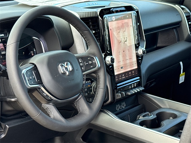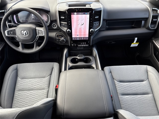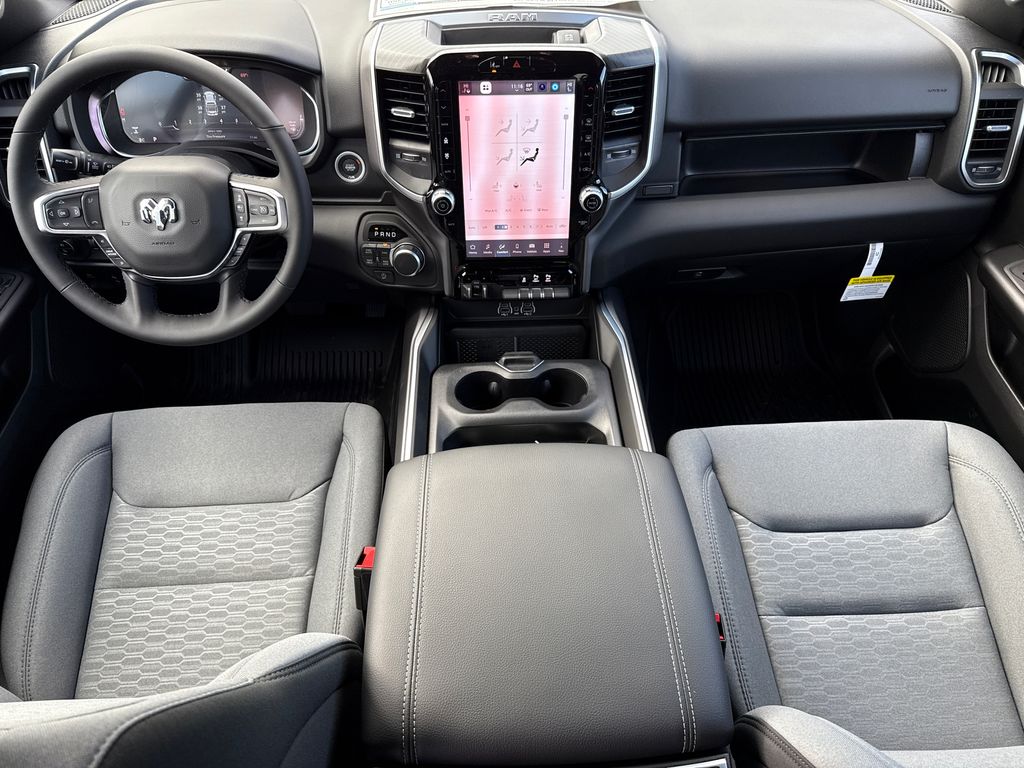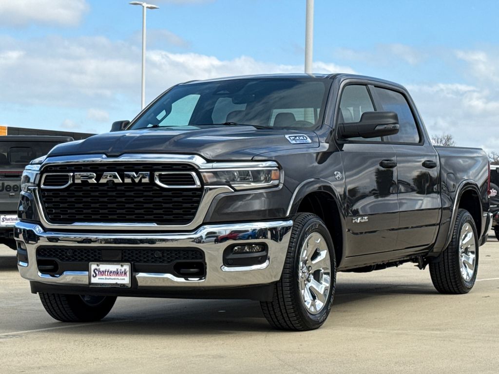 2026 Ram 1500 Big Horn/Lone Star 4D Crew Cab Granite Crystal Metallic Clearcoat 4WD 8-Speed Automatic HEMI 5.7L V8 Multi Displacement VVT eTorque This vehicle comes well equipped with Big Horn Level 2 Equipment Group (115V Auxiliary Power Outlet, 115V Auxiliary Rear Power Outlet, 12" Touchscreen Display, 2nd Row in Floor Storage Bins, 3 Rear Seat Head Restraints, 4 Way Front Headrests, 400W Inverter, 4G LTE Wi-Fi Hot Spot, 9 Amplified Speakers with Subwoofer, Air Conditioning ATC with Dual Zone Control, Apple CarPlay, Auto Power-Folding Mirrors, Auto-Dimming Exterior Driver Mirror, Auto-Dimming Rear-View Mirror, Black Exterior Mirrors, Black Premium Power Mirrors, Body Color Fender Flares, Bucket Seats, Center Console Parts Module, Cluster 7.0" TFT Color Display, Configurable Drive Mode, Connected Travel and Traffic Services, Connectivity - US/Canada, Convex Wide-Angle Exterior Mirror Insert, Deluxe Cloth Bucket Seats, Disassociated Touchscreen Display, Exterior Mirrors Courtesy Lamps, Exterior Mirrors with Heating Element, Exterior Mirrors with Supplemental Signals, Front Seat Back Map Pockets, Full Length Floor Console, Global Telematics Box Module, Glove Box Lamp, Google Android Auto, GPS Antenna Input, GPS Navigation, HD Radio, Heated Front Seats, Heated Steering Wheel, Integrated Center Stack Radio, Integrated Voice Command with Bluetooth, Leather Wrapped Steering Wheel, LED Dome Lamp with on/Off Switch, LED Footwell Lighting, Manual Adjust 4-Way Front Passenger Seat, Media Hub with 2 Charge Only USBs, Overhead LED Lamps, Power 2-Way Driver Lumbar Adjust, Power Adjust 8-Way Driver Seat, Power Adjustable Pedals, Premium Overhead Console, Radio: Uconnect 5 Navigation with 12.0" Display, Rear 60/40 Folding Seat, Rear Center Armrest, Rear Power Sliding Window, Rear Window Defroster, Remote Tailgate Release, Security Alarm, SiriusXM Radio Service, SiriusXM with 360L, Steering Wheel Mounted Audio Controls, Sun Visors with Illuminated Vanity Mirrors, Universal Garage Door Opener, and USB Host Flip), Protection Group (Tow Hooks), Quick Order Package 27R Lone Star (Lone Star Badge), 4-Wheel Disc Brakes, 48V Belt Starter Generator, 6 Speakers, ABS brakes, Air Conditioning, Alloy wheels, AM/FM radio, Anti-Spin Differential Rear Axle, Apple CarPlay/Android Auto, Auto High-beam Headlights, Brake assist, Bumpers: chrome, Cloth Bucket Seats, Cluster 12" TFT Color Display, Compass, Delay-off headlights, Driver door bin, Dual front impact airbags, Dual front side impact airbags, Electronic Stability Control, Front anti-roll bar, Front Bucket Seats, Front Center Armrest w/Storage, Front fog lights, Front License Plate Bracket, Front reading lights, Front wheel independent suspension, Fully automatic headlights, Heated door mirrors, Illuminated entry, Low tire pressure warning, Manual Adjust 4-Way Driver Seat, Manual Folding Exterior Mirrors, Manufacturer's Statement of Origin, MOPAR Front and Rear Rubber Floor Mats, Occupant sensing airbag, Outside temperature display, Overhead airbag, Overhead console, Panic alarm, ParkView Rear Back-Up Camera, Passenger door bin, Passenger vanity mirror, Power door mirrors, Power steering, Power windows, Radio data system, Radio: Uconnect 5 W with 8.4" Display, RAM Grille Badge - Chrome, Rear anti-roll bar, Rear step bumper, Remote keyless entry, Speed control, Supplier Part Tracking (J-1), Tachometer, Telescoping steering wheel, Tilt steering wheel, Traction control, Trailer Brake Control, Trip computer, Variably intermittent wipers, and Voltmeter.