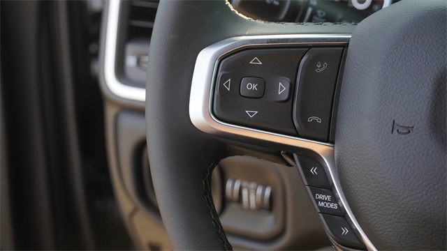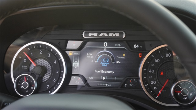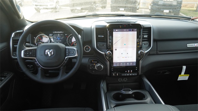 115V Auxiliary Power Outlet, 115V Auxiliary Rear Power Outlet, 12" Touchscreen Display, 3 Rear Seat Head Restraints, 4 Way Front Headrests, 400W Inverter, 4G LTE Wi-Fi Hot Spot, Accent Color Door Handles, Accent Color Premium Power Mirrors, Accent Color Tailgate Handle, Anti-Spin Differential Rear Axle, Apple CarPlay, Auto Power-Folding Mirrors, Auto-Dimming Exterior Driver Mirror, Auto-Dimming Rear-View Mirror, Big Horn Level 2 Equipment Group, Black Exterior Mirrors, Black Exterior Truck Badging, Black Headlamp Bezels, Black Interior Accents, Black Painted Exterior Mirrors Caps, Black Premium Power Mirrors, Black Tail Lamp Bezels, Body Color Fender Flares, Body Color Front Bumper, Bucket Seats, Center Console Parts Module, Cluster 7.0" TFT Color Display, Configurable Drive Mode, Connectivity - US/Canada, Convex Wide-Angle Exterior Mirror Insert, Deluxe Cloth Bucket Seats, Disassociated Touchscreen Display, Exterior Mirrors Courtesy Lamps, Front Seat Back Map Pockets, Full Length Floor Console, Glove Box Lamp, Google Android Auto, GPS Antenna Input, GPS Navigation, Grille Black Surround Black Mesh, HD Radio, Heated Front Seats, Heated Steering Wheel, Integrated Center Stack Radio, Leather Wrapped Steering Wheel, LED Footwell Lighting, Lone Star Badge, Manual Adjust 4-Way Front Passenger Seat, Night Edition, Overhead LED Lamps, Power 2-Way Driver Lumbar Adjust, Power Adjust 8-Way Driver Seat, Power Adjustable Pedals, Premium Overhead Console, RAM Grille Badge - Black, Rear 60/40 Folding Seat, Rear Center Armrest, Rear Power Sliding Window, Rear Window Defroster, Remote Tailgate Release, Security Alarm, SiriusXM Radio Service, Steering Wheel Mounted Audio Controls, Universal Garage Door Opener, USB Host Flip, Wheels: 20" x 9.0" Aluminum Painted Clad.
