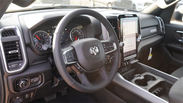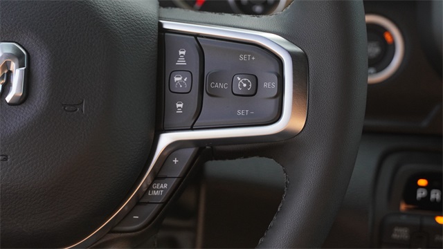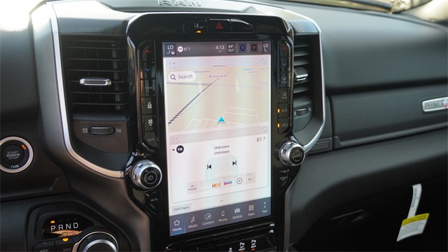 APPLE CAR PLAY, ANDROID AUTO, BLUETOOTH, ALLOY WHEELS, BACK UP CAMERA, BLIND SPOT MONITOR, 115V Auxiliary Power Outlet, 115V Auxiliary Rear Power Outlet, 12" Touchscreen Display, 2nd Row in Floor Storage Bins, 3 Rear Seat Head Restraints, 4 Way Front Headrests, 400W Inverter, 4G LTE Wi-Fi Hot Spot, 9 Amplified Speakers with Subwoofer, Accent Color Door Handles, Accent Color Premium Power Mirrors, Accent Color Tailgate Handle, Air Conditioning ATC with Dual Zone Control, Anti-Spin Differential Rear Axle, Apple CarPlay, Auto Power-Folding Mirrors, Auto-Dimming Exterior Driver Mirror, Auto-Dimming Rear-View Mirror, Big Horn Level 2 Equipment Group, Black Exterior Mirrors, Black Exterior Truck Badging, Black Headlamp Bezels, Black Interior Accents, Black Painted Exterior Mirrors Caps, Black Premium Power Mirrors, Black Tail Lamp Bezels, Body Color Fender Flares, Body Color Front Bumper, Body Color Rear Bumper with Step Pads, Bucket Seats, Center Console Parts Module, Cluster 7.0" TFT Color Display, Configurable Drive Mode, Connected Travel and Traffic Services, Connectivity - US/Canada, Convex Wide-Angle Exterior Mirror Insert, Deluxe Cloth Bucket Seats, Disassociated Touchscreen Display, Dual Exhaust with Black Tips, Exterior Mirrors Courtesy Lamps, Exterior Mirrors with Heating Element, Exterior Mirrors with Supplemental Signals, Front Seat Back Map Pockets, Full Length Floor Console, Global Telematics Box Module, Glove Box Lamp, Google Android Auto, GPS Antenna Input, GPS Navigation, Grille Black Surround Black Mesh, HD Radio, Heated Front Seats, Heated Steering Wheel, Integrated Center Stack Radio, Integrated Voice Command with Bluetooth, Leather Wrapped Steering Wheel, LED Dome Lamp with on/Off Switch, LED Footwell Lighting, Manual Adjust 4-Way Front Passenger Seat, Media Hub with 2 Charge Only USBs, Night Edition, Overhead LED Lamps, Power 2-Way Driver Lumbar Adjust, Power Adjust 8-Way Driver Seat, Power Adjustable Pedals, Premium Overhead Console, Radio: Uconnect 5 Navigation with 12.0" Display, RAM Grille Badge - Black, Rear 60/40 Folding Seat, Rear Center Armrest, Rear Power Sliding Window, Rear Window Defroster, Remote Tailgate Release, Security Alarm, SiriusXM Radio Service, SiriusXM with 360L, Steering Wheel Mounted Audio Controls, Sun Visors with Illuminated Vanity Mirrors, Universal Garage Door Opener, USB Host Flip, Wheels: 20" x 9.0" Aluminum Painted Clad, Wheels: 20" x 9" Aluminum Chrome Clad.