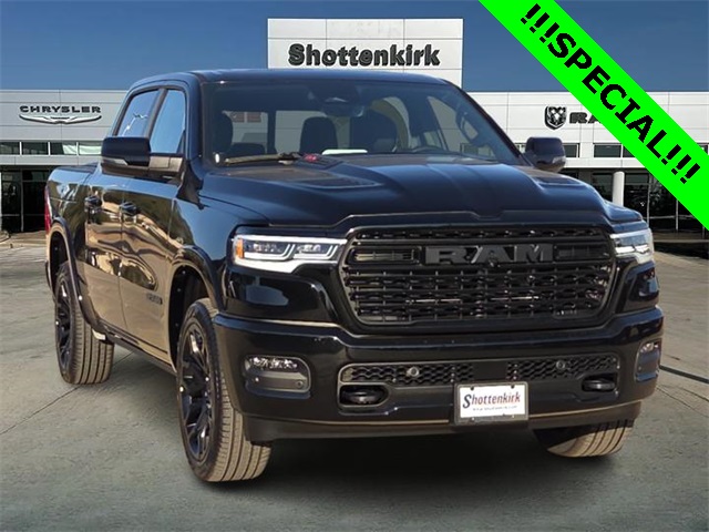 2026 Ram 1500 Limited 4D Crew Cab Diamond Black Crystal Pearlcoat 4WD 8-Speed Automatic 3.0L I6 This vehicle comes well equipped with Limited Level An Equipment Group (12-Way/1-Way Trailer Connector, 14.4" Touchscreen Display, 240 Amp Alternator, 4G LTE Wi-Fi Hot Spot, Apple CarPlay, Connected Travel and Traffic Services, Connectivity - US/Canada, Disassociated Touchscreen Display, Drowsy Driver Detection, Evasive Steer Assist, Exterior 115V AC Outlet, Global Telematics Box Module, Google Android Auto, GPS Antenna Input, GPS Navigation, Hands-Free Active Driving Assist System, HD Radio, Heads-Up Display, Integrated Center Stack Radio, Integrated Voice Command with Bluetooth, Intersection Collision Assist System, LED CHMSL Lamp, Radio: Uconnect 5 Nav with 14.4" Display, RamBox Cargo Management System, SiriusXM Radio Service, SiriusXM with 360L, Smartphone as a Key Capable, Surround View Camera System, Traffic Sign Recognition, Tri-Fold Tonneau Cover, and USB Host Flip), Night Edition
