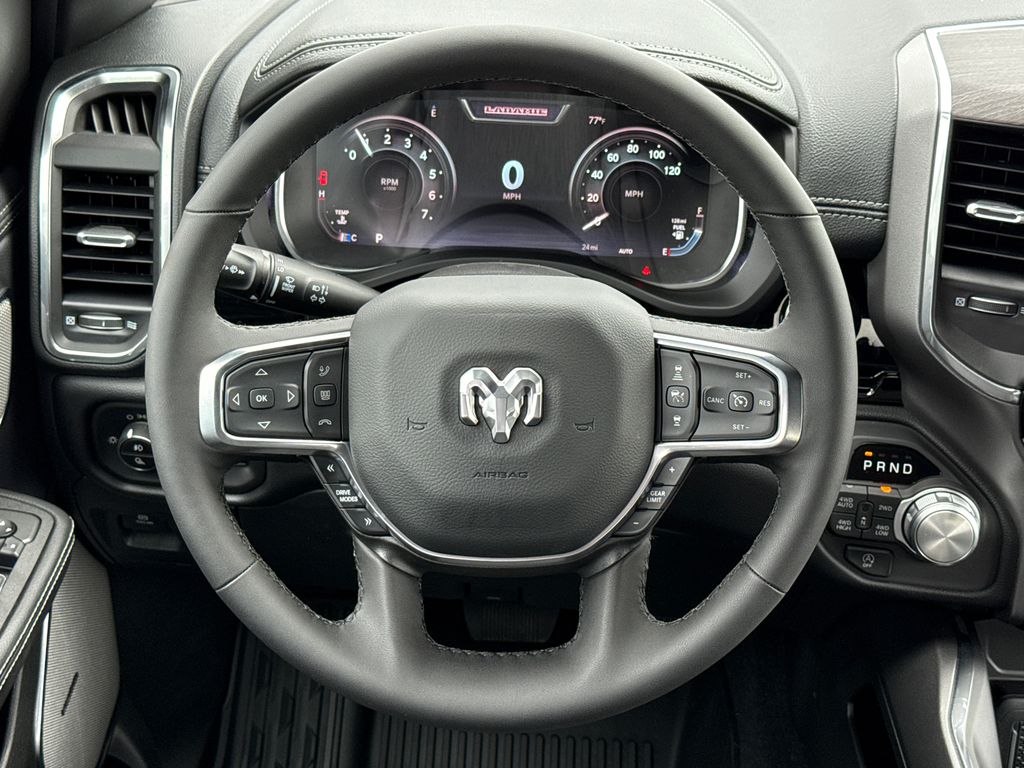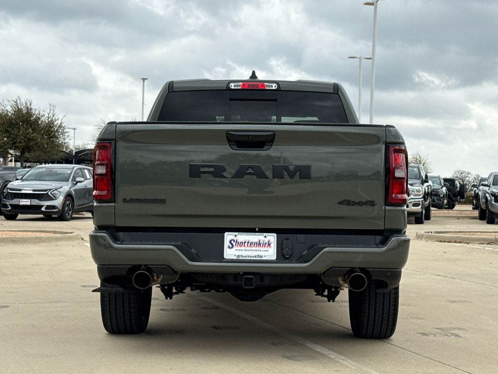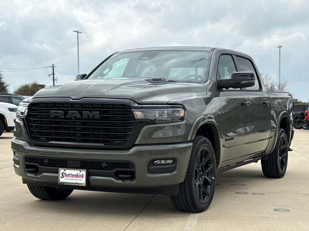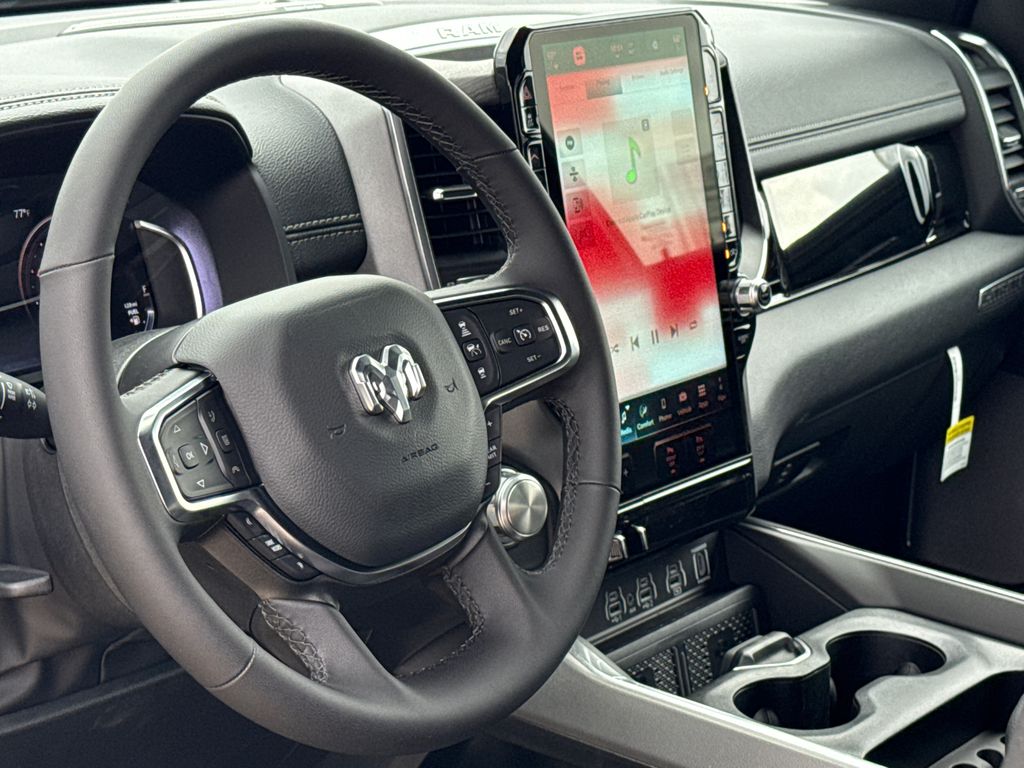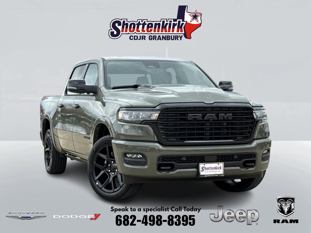 2026 Ram 1500 Laramie 4D Crew Cab Canyon Lake 4WD 8-Speed Automatic 3.0L I6 This vehicle comes well equipped with Bed Utility Group (Exterior 115V AC Outlet, MOPAR 4 Adjustable Cargo Tie-Down Hooks, and MOPAR Spray in Bedliner), Laramie Level 2 Equipment Group (14.4" Touchscreen Display, 4G LTE Wi-Fi Hot Spot, Cluster 12" TFT Color Display, Connected Travel and Traffic Services, Connectivity - US/Canada, Front Passenger Interactive Display, GPS Navigation, Harman/Kardon 19 Speaker Premium Sound, Integrated Center Stack Radio, Integrated Voice Command with Bluetooth, Power Tailgate, Radio: Uconnect 5 Nav with 14.4" Display, Rain Sensitive Windshield Wipers, SiriusXM Radio Service, SiriusXM with 360L, and USB Host Flip), Night Edition (Accent Color Door Handles, Accent Color Premium Power Mirrors, Accent Color Tailgate Handle, Anti-Spin Differential Rear Axle, Auto Power-Folding Mirrors, Auto-Dimming Exterior Driver Mirror, Black Exterior Truck Badging, Black Headlamp Bezels, Black Interior Accents, Black Painted Exterior Mirrors Caps, Black Tail Lamp Bezels, Body Color Front Bumper, Body Color Rear Bumper with Step Pads, Convex Wide-Angle Exterior Mirror Insert, Dual Exhaust with Black Tips, Exterior Mirrors Approach Lamps, Exterior Mirrors Courtesy Lamps, Exterior Mirrors with Heating Element, Exterior Mirrors with Memory, Exterior Mirrors with Supplemental Signals, Grille Surround 3 Black Texture 2 Black, Pirelli Brand Tires, Proximity Approach/Departure Lamps, RAM Grille Badge - Black, Sport Performance Hood, and Wheels: 22" x 9" Forged Aluminum), Protection Group (Tow Hooks), Quick Order Package 21H Laramie, 1500 Laramie, 4D Crew Cab, 3.0L I6, 4WD, Canyon Lake, and Black Leather Bed Utility Group (Exterior 115V AC Outlet, MOPAR 4 Adjustable Cargo Tie-Down Hooks, and MOPAR Spray in Bedliner), Laramie Level 2 Equipment Group (14.4" Touchscreen Display, 4G LTE Wi-Fi Hot Spot, Cluster 12" TFT Color Display, Connected Travel and Traffic Services, Connectivity - US/Canada, Front Passenger Interactive Display, GPS Navigation, Harman/Kardon 19 Speaker Premium Sound, Integrated Center Stack Radio, Integrated Voice Command with Bluetooth, Power Tailgate, Radio: Uconnect 5 Nav with 14.4" Display, Rain Sensitive Windshield Wipers, SiriusXM Radio Service, SiriusXM with 360L, and USB Host Flip), Night Edition (Accent Color Door Handles, Accent Color Premium Power Mirrors, Accent Color Tailgate Handle, Anti-Spin Differential Rear Axle, Auto Power-Folding Mirrors, Auto-Dimming Exterior Driver Mirror, Black Exterior Truck Badging, Black Headlamp Bezels, Black Interior Accents, Black Painted Exterior Mirrors Caps, Black Tail Lamp Bezels, Body Color Front Bumper, Body Color Rear Bumper with Step Pads, Convex Wide-Angle Exterior Mirror Insert, Dual Exhaust with Black Tips, Exterior Mirrors Approach Lamps, Exterior Mirrors Courtesy Lamps, Exterior Mirrors with Heating Element, Exterior Mirrors with Memory, Exterior Mirrors with Supplemental Signals, Grille Surround 3 Black Texture 2 Black, Pirelli Brand Tires, Proximity Approach/Departure Lamps, RAM Grille Badge - Black, Sport Performance Hood, and Wheels: 22" x 9" Forged Aluminum), Protection Group (Tow Hooks), Quick Order Package 21H Laramie, 1500 Laramie, 4D Crew Cab, 3.0L I6, 4WD, Canyon Lake, Black Leather, 10 Speakers, 3.55 Rear Axle Ratio, 4-Wheel Disc Brakes, ABS brakes, Active Noise Control System, Adjustable pedals, Air Conditioning, Alloy wheels, AM/FM radio: SiriusXM with 360L, Apple CarPlay/Android Auto, Audio memory, Auto High-beam Headlights, Auto-dimming door mirrors, Auto-dimming Rear-View mirror, Automatic temperature control, Brake assist, Bumpers: chrome, Chrome Exterior Mirrors, Compass, Delay-off headlights, Driver door bin, Driver vanity mirror, Dual front impact airba Price includes: $1000 - 2026 National Bonus Cash . Exp. 03/31/2026 $1000 - 2026 Southwest BC State of Texas Regional Bonus Cash . Exp. 03/31/2026 $3500 - 2026 National Retail Bonus Cash . Exp. 03/31/2026