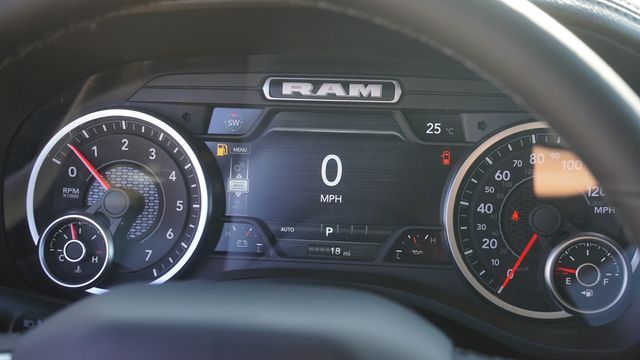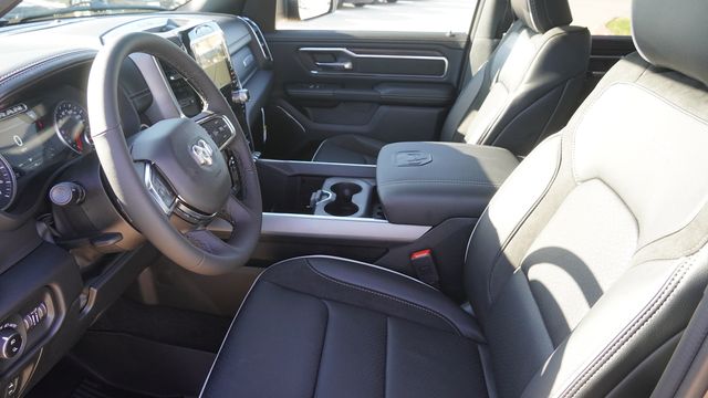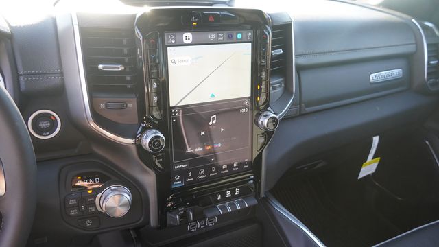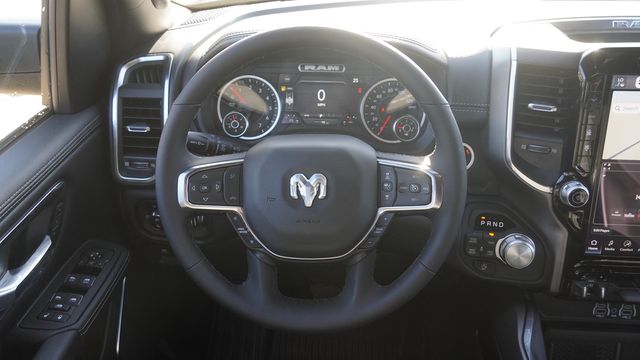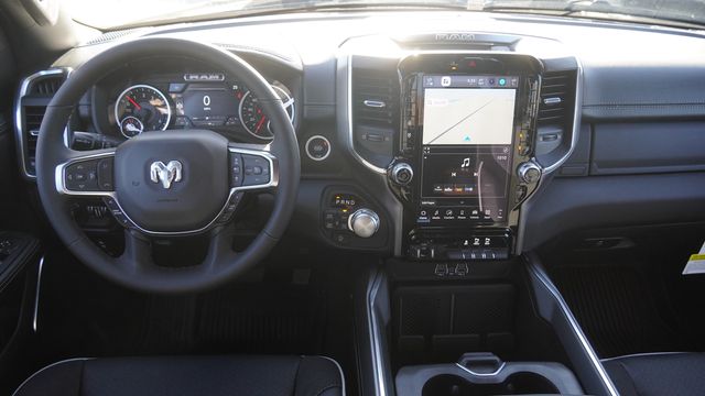 This 1500 Laramie comes well equipped with Bed Utility Group (Exterior 115V AC Outlet, MOPAR 4 Adjustable Cargo Tie-Down Hooks, and MOPAR Spray in Bedliner), Laramie Level 1 Equipment Group (Rain Sensitive Windshield Wipers and Remote Tailgate Release), Night Edition (Accent Color Door Handles, Accent Color Premium Power Mirrors, Accent Color Tailgate Handle, Anti-Spin Differential Rear Axle, Auto Power-Folding Mirrors, Auto-Dimming Exterior Driver Mirror, Black Exterior Truck Badging, Black Headlamp Bezels, Black Interior Accents, Black Painted Exterior Mirrors Caps, Black Tail Lamp Bezels, Body Color Front Bumper, Body Color Rear Bumper with Step Pads, Convex Wide-Angle Exterior Mirror Insert, Dual Exhaust with Black Tips, Exterior Mirrors Approach Lamps, Exterior Mirrors Courtesy Lamps, Exterior Mirrors with Heating Element, Exterior Mirrors with Memory, Exterior Mirrors with Supplemental Signals, Grille Surround 3 Black Texture 2 Black, Pirelli Brand Tires, Proximity Approach/Departure Lamps, RAM Grille Badge - Black, Sport Performance Hood, and Wheels: 22" x 9" Forged Aluminum), Quick Order Package 27H Laramie, 10 Speakers, 33 Gallon Fuel Tank, 4-Wheel Disc Brakes, 4G LTE Wi-Fi Hot Spot, ABS brakes, Active Noise Control System, Adjustable pedals, Air Conditioning, Alloy wheels, AM/FM radio: SiriusXM with 360L, Apple CarPlay/Android Auto, Audio memory, Auto High-beam Headlights, Auto-dimming door mirrors, Auto-dimming Rear-View mirror, Automatic temperature control, Brake assist, Bumpers: chrome, Chrome Exterior Mirrors, Compass, Connected Travel and Traffic Services, Connectivity - US/Canada, Delay-off headlights, Dome Dual LED Reading Lamp, Driver door bin, Driver vanity mirror, Dual front impact airbags, Dual front side impact airbags, Dual-Pane Panoramic Sunroof, Electronic Stability Control, Front anti-roll bar, Front Bucket Seats, Front Center Armrest w/Storage, Front dual zone A/C, Front fog lights, Front License Plate Bracket, Front reading lights, Front wheel independent suspension, Fully automatic headlights, Garage door transmitter, GPS Navigation, Heated door mirrors, Heated front seats, Heated rear seats, Heated steering wheel, Illuminated entry, Integrated Center Stack Radio, Integrated Voice Command with Bluetooth, Leather steering wheel, Leather Trimmed Bucket Seats, LED Dome/Reading Lamp, Low tire pressure warning, Memory seat, MOPAR Front and Rear Rubber Floor Mats, Navigation System, Occupant sensing airbag, Off-Road Information Pages, Outside temperature display, Overhead airbag, Overhead console, Panic alarm, ParkView Rear Back-Up Camera, Passenger door bin, Passenger vanity mirror, Pedal memory, Power door mirrors, Power driver seat, Power passenger seat, Power steering, Power windows, Radio data system, Radio: Uconnect 5 Navigation with 12.0" Display, RAM Grille Badge - Chrome, Rear anti-roll bar, Rear reading lights, Rear seat center armrest, Rear step bumper, Rear Wheelhouse Liners, Remote keyless entry, Security system, SiriusXM Radio Service, SiriusXM with 360L, Speed control, Split folding rear seat, Steering wheel mounted audio controls, Tachometer, Telescoping steering wheel, Tilt steering wheel, Traction control, Trailer Brake Control, Trip computer, Turn signal indicator mirrors, USB Host Flip, Variably intermittent wipers, Ventilated front seats, Voltmeter, and Wheels: 20" x 9" Premium Paint/Polish.