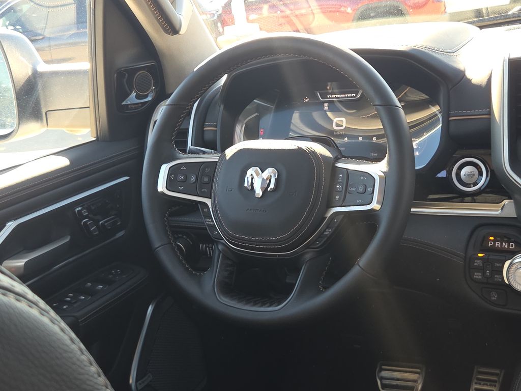 2026 Ram 1500 Tungsten 4D Crew Cab Ivory White Tri-Coat Pearlcoat 4WD 8-Speed Automatic 3.0L I6 This vehicle comes well equipped with Bed Utility Group (Exterior 115V AC Outlet, MOPAR 4 Adjustable Cargo Tie-Down Hooks, and Truck Bed Cargo Divider), Quick Order Package 22V Tungsten, 12-Way/1-Way Trailer Connector, 3.92 Rear Axle Ratio, 4-Wheel Disc Brakes, ABS brakes, Adjustable pedals, Air Conditioning, Alloy wheels, AM/FM radio, Apple CarPlay/Android Auto, Audio memory, Auto High-beam Headlights, Auto Power-Folding Mirrors, Auto-dimming door mirrors, Auto-Dimming Exterior Driver Mirror, Auto-dimming Rear-View mirror, Auto-leveling suspension, Automatic temperature control, Bodyside moldings, Brake assist, Bumpers: body-color, Chrome Exterior Mirrors, Compass, Delay-off headlights, Driver door bin, Driver vanity mirror, Dual front impact airbags, Dual front side impact airbags, Electronic Stability Control, Exterior Mirrors Courtesy Lamps, Exterior Mirrors with Heating Element, Exterior Mirrors with Memory, Exterior Mirrors with Supplemental Signals, Exterior Parking Camera Rear, Front anti-roll bar, Front Bucket Seats, Front Center Armrest w/Storage, Front dual zone A/C, Front fog lights, Front License Plate Bracket, Front reading lights, Front wheel independent suspension, Fully automatic headlights, Garage door transmitter, Heads-Up Display, Heated door mirrors, Heated front seats, Heated rear seats, Heated steering wheel, Illuminated entry, Leather steering wheel, Low tire pressure warning, Memory seat, Multi-Function Tailgate, Navigation System, Occupant sensing airbag, Outside temperature display, Overhead airbag, Overhead console, Panic alarm, Passenger door bin, Passenger vanity mirror, Pedal memory, Power adjustable front head restraints, Power door mirrors, Power driver seat, Power moonroof, Power passenger seat, Power steering, Power windows, Premium Leather Bucket Seats, Radio data system, Radio: Uconnect 5 Nav with 14.4" Display, Rain sensing wipers, RAM's Head Badge, Rear anti-roll bar, Rear reading lights, Rear seat center armrest, Rear step bumper, Rear window defroster, Remote keyless entry, Remote Tailgate Release, Security system, Speed control, Split folding rear seat, Steering wheel mounted audio controls, Tachometer, Telescoping steering wheel, Tilt steering wheel, Traction control, Trip computer, Turn signal indicator mirrors, Variably intermittent wipers, Ventilated front seats, Ventilated rear seats, Voltmeter, and Wheels: 22" x 9" Polish/Painted with Inserts.