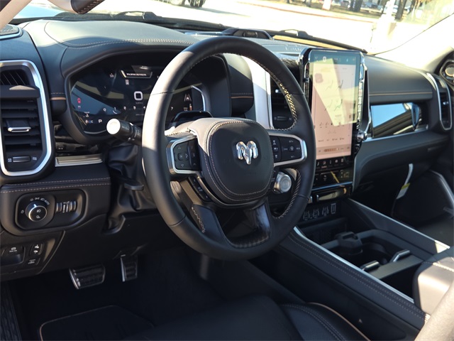 2026 Ram 1500 Tungsten 4D Crew Cab Forged Blue Metallic 4WD 8-Speed Automatic 3.0L I6 This vehicle comes well equipped with Bed Utility Group (Exterior 115V AC Outlet, MOPAR 4 Adjustable Cargo Tie-Down Hooks, and Truck Bed Cargo Divider), Quick Order Package 22V Tungsten, 12-Way/1-Way Trailer Connector, 3.92 Rear Axle Ratio, 4-Wheel Disc Brakes, ABS brakes, Adjustable pedals, Air Conditioning, Alloy wheels, AM/FM radio, Apple CarPlay/Android Auto, Audio memory, Auto High-beam Headlights, Auto Power-Folding Mirrors, Auto-dimming door mirrors, Auto-Dimming Exterior Driver Mirror, Auto-dimming Rear-View mirror, Auto-leveling suspension, Automatic temperature control, Bodyside moldings, Brake assist, Bumpers: body-color, Chrome Exterior Mirrors, Compass, Delay-off headlights, Driver door bin, Driver vanity mirror, Dual front impact airbags, Dual front side impact airbags, Electronic Stability Control, Exterior Mirrors Courtesy Lamps, Exterior Mirrors with Heating Element, Exterior Mirrors with Memory, Exterior Mirrors with Supplemental Signals, Exterior Parking Camera Rear, Front anti-roll bar, Front Bucket Seats, Front Center Armrest w/Storage, Front dual zone A/C, Front fog lights, Front License Plate Bracket, Front reading lights, Front wheel independent suspension, Fully automatic headlights, Garage door transmitter, Heads-Up Display, Heated door mirrors, Heated front seats, Heated rear seats, Heated steering wheel, Illuminated entry, Leather steering wheel, Low tire pressure warning, Memory seat, Navigation System, Occupant sensing airbag, Outside temperature display, Overhead airbag, Overhead console, Panic alarm, Passenger door bin, Passenger vanity mirror, Pedal memory, Power adjustable front head restraints, Power door mirrors, Power driver seat, Power moonroof, Power passenger seat, Power steering, Power windows, Premium Leather Bucket Seats, Radio data system, Radio: Uconnect 5 Nav with 14.4" Display, Rain sensing wipers, Rear anti-roll bar, Rear reading lights, Rear seat center armrest, Rear step bumper, Rear window defroster, Remote keyless entry, Security system, Speed control, Split folding rear seat, Steering wheel mounted audio controls, Tachometer, Telescoping steering wheel, Tilt steering wheel, Traction control, Trailer Brake Control, Trip computer, Turn signal indicator mirrors, Variably intermittent wipers, Ventilated front seats, Ventilated rear seats, Voltmeter, and Wheels: 22" x 9" Polish/Painted with Inserts.