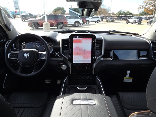2026 Ram 1500 Tungsten 4D Crew Cab Diamond Black Crystal Pearlcoat 4WD 8-Speed Automatic 3.0L I6 This vehicle comes well equipped with Bed Utility Group (Exterior 115V AC Outlet, MOPAR 4 Adjustable Cargo Tie-Down Hooks, and Truck Bed Cargo Divider), Quick Order Package 22V Tungsten, 1500 Tungsten, 4D Crew Cab, 3.0L I6, 4WD, Diamond Black Crystal Pearlcoat, and Black Leather Bed Utility Group (Exterior 115V AC Outlet, MOPAR 4 Adjustable Cargo Tie-Down Hooks, and Truck Bed Cargo Divider), Quick Order Package 22V Tungsten, 1500 Tungsten, 4D Crew Cab, 3.0L I6, 4WD, Diamond Black Crystal Pearlcoat, Black Leather, 12-Way/1-Way Trailer Connector, 3.92 Rear Axle Ratio, 4-Wheel Disc Brakes, ABS brakes, Adjustable pedals, Air Conditioning, Alloy wheels, AM/FM radio, Apple CarPlay/Android Auto, Audio memory, Auto High-beam Headlights, Auto Power-Folding Mirrors, Auto-dimming door mirrors, Auto-Dimming Exterior Driver Mirror, Auto-dimming Rear-View mirror, Auto-leveling suspension, Automatic temperature control, Bodyside moldings, Brake assist, Bumpers: body-color, Chrome Exterior Mirrors, Compass, Delay-off headlights, Driver door bin, Driver vanity mirror, Dual front impact airbags, Dual front side impact airbags, Electronic Stability Control, Exterior Mirrors Courtesy Lamps, Exterior Mirrors with Heating Element, Exterior Mirrors with Memory, Exterior Mirrors with Supplemental Signals, Exterior Parking Camera Rear, Front anti-roll bar, Front Bucket Seats, Front Center Armrest w/Storage, Front dual zone A/C, Front fog lights, Front License Plate Bracket, Front reading lights, Front wheel independent suspension, Fully automatic headlights, Garage door transmitter, Heads-Up Display, Heated door mirrors, Heated front seats, Heated rear seats, Heated steering wheel, Illuminated entry, Leather steering wheel, Low tire pressure warning, Memory seat, Multi-Function Tailgate, Navigation System, Occupant sensing airbag, Outside temperature display, Overhead airbag, Overhead console, Panic alarm, Passenger door bin, Passenger vanity mirror, Pedal memory, Power adjustable front head restraints, Power door mirrors, Power driver seat, Power moonroof, Power passenger seat, Power steering, Power windows, Premium Leather Bucket Seats, Radio data system, Radio: Uconnect 5 Nav with 14.4" Display, Rain sensing wipers, RAM's Head Badge, Rear anti-roll bar, Rear reading lights, Rear seat center armrest, Rear step bumper, Rear window defroster, Remote keyless entry, Remote Tailgate Release, Security system, Speed control, Split folding rear seat, Steering wheel mounted audio controls, Tachometer, Telescoping steering wheel, Tilt steering wheel, Traction control, Trip computer, Turn signal indicator mirrors, Variably intermittent wipers, Ventilated front seats, Ventilated rear seats, Voltmeter, and Wheels: 22" x 9" Polish/Painted with Inserts.