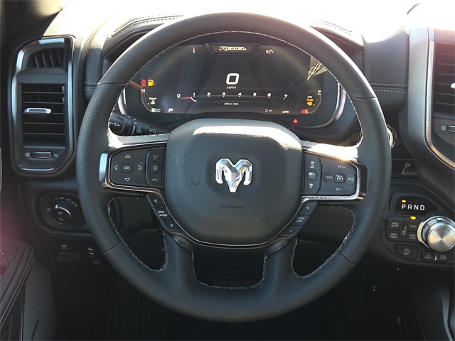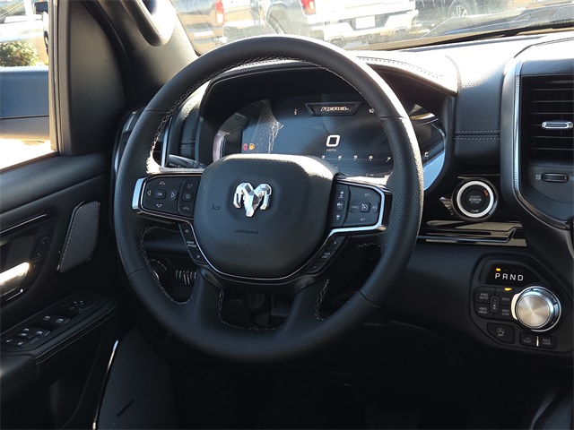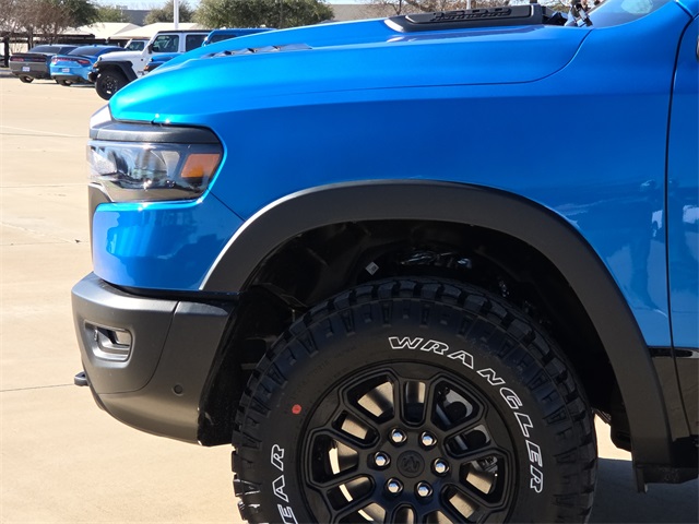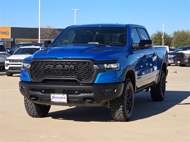 2026 Ram 1500 Rebel 4D Crew Cab Hydro Blue Pearlcoat 4WD 8-Speed Automatic 3.0L I6 This vehicle comes well equipped with Bed Utility Group (Exterior 115V AC Outlet, MOPAR 4 Adjustable Cargo Tie-Down Hooks, and MOPAR Spray in Bedliner), Quick Order Package 21W Rebel, Rebel Level 2 Equipment Group (115V Auxiliary Rear Power Outlet, 14.4" Touchscreen Display, 2-Door Passive Entry, Front Door Locks, 4G LTE Wi-Fi Hot Spot, Accent Color Door Handles, Accent Color Premium Power Mirrors, Accent Color Tailgate Handle, Apple CarPlay, Auto Power-Folding Mirrors, Auto-Dimming Exterior Driver Mirror, Black Painted Exterior Mirrors Caps, Connected Travel and Traffic Services, Connectivity - US/Canada, Convex Wide-Angle Exterior Mirror Insert, Disassociated Touchscreen Display, Driver Seat Memory, Dual Wireless Charging Pad, Exterior Mirrors Approach Lamps, Exterior Mirrors Courtesy Lamps, Exterior Mirrors with Heating Element, Exterior Mirrors with Memory, Exterior Mirrors with Supplemental Signals, Front Passenger Interactive Display, Global Telematics Box Module, Google Android Auto, GPS Antenna Input, GPS Navigation, Harman/Kardon 19 Speaker Premium Sound, HD Radio, Heated Second Row Seats, Integrated Center Stack Radio, Integrated Voice Command with Bluetooth, Media Hub with 2 Charge Only USBs, Off-Road Information Pages, Power 2-Way Passenger Lumbar Adjust, Power Adjust 8-Way Front Passenger Seat, Power Adjustable Pedals with Memory, Power Tailgate, Proximity Approach/Departure Lamps, Radio: Uconnect 5 Nav with 14.4" Display, Radio/Driver Seat/Mirrors/Pedals Memory, Rain Sensitive Windshield Wipers, Rear Window Defroster, Security Alarm, SiriusXM Radio Service, SiriusXM with 360L, Smartphone as a Key Capable, and USB Host Flip), 10 Speakers, 3.92 Rear Axle Ratio, 33 Gallon Fuel Tank, 4 Way Front Headrests, 4-Wheel Disc Brakes, ABS brakes, Active Noise Control System, Air Conditioning, Alloy wheels, AM/FM radio: SiriusXM with 360L, Apple CarPlay/Android Auto, Auto High-beam Headlights, Auto-dimming Rear-View mirror, Automatic temperature control, Black Exterior Mirrors, Brake assist, Bucket Seats, Cloth/Vinyl Bucket Seats, Compass, Delay-off headlights, Driver door bin, Driver vanity mirror, Dual front impact airbags, Dual front side impact airbags, Electronic Stability Control, Front anti-roll bar, Front Bucket Seats, Front Center Armrest w/Storage, Front dual zone A/C, Front fog lights, Front License Plate Bracket, Front reading lights, Front Seat Back Map Pockets, Front wheel independent suspension, Full Length Upgraded Floor Console, Fully automatic headlights, Garage door transmitter, Heated door mirrors, Heated Front Seats, Heated front seats, Heated Steering Wheel, Heated steering wheel, Illuminated entry, Leather steering wheel, Low tire pressure warning, Manual Folding Exterior Mirrors, Navigation System, Occupant sensing airbag, Outside temperature display, Overhead airbag, Overhead console, Panic alarm, ParkView Rear Back-Up Camera, Passenger door bin, Passenger vanity mirror, Power 2-Way Driver Lumbar Adjust, Power Adjust 8-Way Driver Seat, Power door mirrors, Power driver seat, Power steering, Power windows, Radio data system, Radio: Uconnect 5 Navigation with 12.0" Display, Rear 60/40 Folding Seat, Rear anti-roll bar, Rear seat center armrest, Rear step bumper, Remote keyless entry, Speed control, Split folding rear seat, Steering wheel mounted audio controls, Tachometer, Telescoping steering wheel, Tilt steering wheel, Traction control, Trailer Brake Control, Trip computer, Variably intermittent wipers, Voltmeter, and Wheels: 18" x 8.0" Painted Mid-Gloss Black.