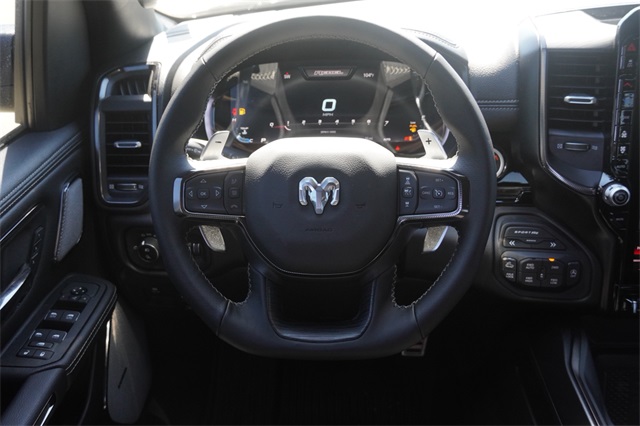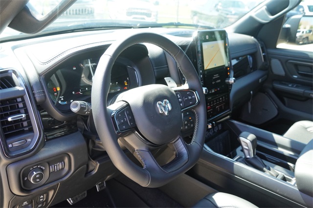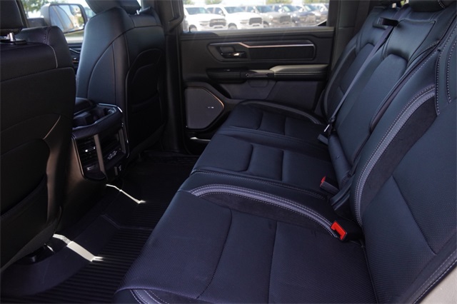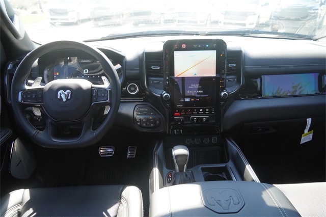 LEATHER INTERIOR, BACK UP CAMERA, BLIND SPOT MONITOR, 1500 Rebel, 4D Crew Cab, 3.0L I6, 8-Speed Automatic, 4WD, Diamond Black Crystal Pearlcoat, Black Leather, 115V Auxiliary Rear Power Outlet, 14.4" Touchscreen Display, 2-Door Passive Entry, Front Door Locks, 4 Way Front Headrests, 4G LTE Wi-Fi Hot Spot, Accent Color Door Handles, Accent Color Premium Power Mirrors, Accent Color Tailgate Handle, Apple CarPlay, Auto Power-Folding Mirrors, Auto-Dimming Exterior Driver Mirror, Bed Utility Group, Black Painted Exterior Mirrors Caps, Bucket Seats, Connectivity - US/Canada, Convex Wide-Angle Exterior Mirror Insert, Disassociated Touchscreen Display, Driver Seat Memory, Dual Wireless Charging Pad, Exterior 115V AC Outlet, Exterior Mirrors Approach Lamps, Exterior Mirrors Courtesy Lamps, Floor Console, Front Passenger Interactive Display, Front Seat Back Map Pockets, G/T Decal, G/T Package, Google Android Auto, GPS Antenna Input, GPS Navigation, GT Interior Theme, HD Radio, Heated Front Seats, Heated Second Row Seats, Heated Steering Wheel, Integrated Center Stack Radio, Leather Wrapped Shift Knob, Leather-Wrapped Steering Wheel, Leather/Vinyl Bucket Seats, MOPAR 4 Adjustable Cargo Tie-Down Hooks, MOPAR Bright Pedal Kit, Off-Road Information Pages, Performance Pages, Power 2-Way Passenger Lumbar Adjust, Power 4-Way Driver Lumbar Adjust, Power 4-Way Passenger Lumbar Adjust, Power Adjust 8-Way Driver Seat, Power Adjust 8-Way Front Passenger Seat, Power Tailgate, Proximity Approach/Departure Lamps, Quick Order Package 21W Rebel, Radio/Driver Seat/Mirrors/Pedals Memory, Rain Sensitive Windshield Wipers, Rear 60/40 Folding Split Recline Seat, Rear Window Defroster, Rebel Level 2 Equipment Group, Security Alarm, SiriusXM Radio Service, Steering Wheel Mounted Shift Control, Under Seat Lighting, USB Host Flip, Ventilated Front Seats, Wheels: 18" x 8.0" Painted Mid-Gloss Black.