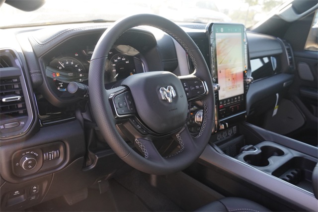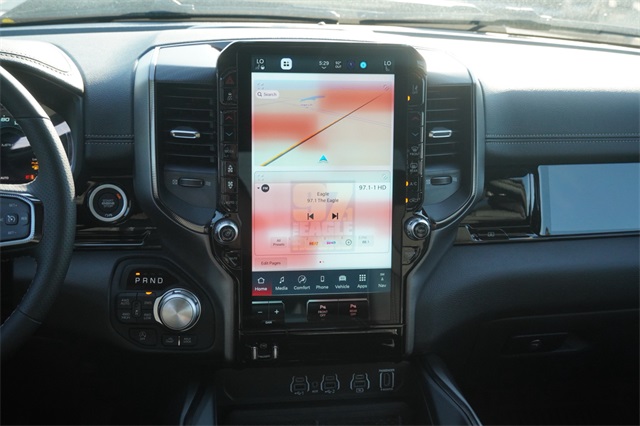 This 1500 Rebel comes well equipped with Bed Utility Group (Exterior 115V AC Outlet and MOPAR 4 Adjustable Cargo Tie-Down Hooks), Quick Order Package 21W Rebel, Rebel Level 2 Equipment Group (14.4" Touchscreen Display, Driver Seat Memory, Dual Wireless Charging Pad, GPS Navigation, Heated Second Row Seats, Power Adjust 8-Way Front Passenger Seat, Power Tailgate, Rain Sensitive Windshield Wipers, 115V Auxiliary Rear Power Outlet, 2-Door Passive Entry, Front Door Locks, 4G LTE Wi-Fi Hot Spot, Accent Color Door Handles, Accent Color Premium Power Mirrors, Accent Color Tailgate Handle, Apple CarPlay, Auto Power-Folding Mirrors, Auto-Dimming Exterior Driver Mirror, Black Painted Exterior Mirrors Caps, Connectivity - US/Canada, Convex Wide-Angle Exterior Mirror Insert, Disassociated Touchscreen Display, Exterior Mirrors Approach Lamps, Exterior Mirrors Courtesy Lamps, Front Passenger Interactive Display, Google Android Auto, GPS Antenna Input, HD Radio, Integrated Center Stack Radio, Off-Road Information Pages, Power 2-Way Passenger Lumbar Adjust, Proximity Approach/Departure Lamps, Radio/Driver Seat/Mirrors/Pedals Memory, Rear Window Defroster, Security Alarm, SiriusXM Radio Service, and USB Host Flip), 1500 Rebel, 4D Crew Cab, 3.0L I6, 8-Speed Automatic, 4WD, Diamond Black Crystal Pearlcoat, Black Leather, Auto High-beam Headlights, Delay-off headlights, Dual-Pane Panoramic Sunroof, Front fog lights, Fully automatic headlights, ParkView Rear Back-Up Camera, 10 Speakers, 3.92 Rear Axle Ratio, 33 Gallon Fuel Tank, 4 Way Front Headrests, 4-Wheel Disc Brakes, ABS brakes, Air Conditioning, Alloy wheels, AM/FM radio: SiriusXM with 360L, Apple CarPlay/Android Auto, Auto-dimming Rear-View mirror, Automatic temperature control, Black Exterior Mirrors, Brake assist, Bucket Seats, Cloth/Vinyl Bucket Seats, Compass, Dome Dual LED Reading Lamp, Driver door bin, Driver vanity mirror, Dual front impact airbags, Dual front side impact airbags, Electronic Stability Control, Front anti-roll bar, Front Bucket Seats, Front Center Armrest w/Storage, Front dual zone A/C, Front License Plate Bracket, Front reading lights, Front Seat Back Map Pockets, Front wheel independent suspension, Full Length Upgraded Floor Console, Garage door transmitter, Heated door mirrors, Heated Front Seats, Heated front seats, Heated Steering Wheel, Heated steering wheel, Illuminated entry, Leather steering wheel, Low tire pressure warning, Manual Folding Exterior Mirrors, Occupant sensing airbag, Outside temperature display, Overhead airbag, Overhead console, Panic alarm, Passenger door bin, Passenger vanity mirror, Power 2-Way Driver Lumbar Adjust, Power Adjust 8-Way Driver Seat, Power door mirrors, Power driver seat, Power steering, Power windows, Radio data system, RamBox Cargo Management System, Rear 60/40 Folding Seat, Rear anti-roll bar, Rear seat center armrest, Rear step bumper, Remote keyless entry, Speed control, Split folding rear seat, Steering wheel mounted audio controls, Tachometer, Telescoping steering wheel, Tilt steering wheel, Traction control, Trailer Bra Price includes: $3500 - 2026 National Retail Consumer