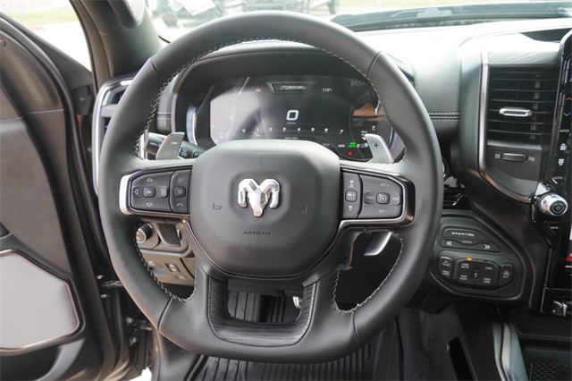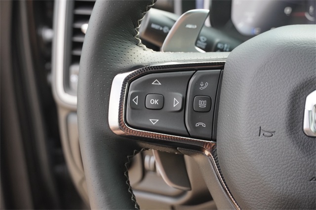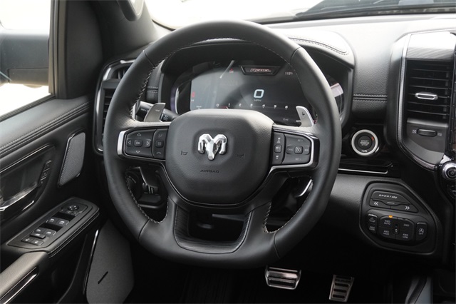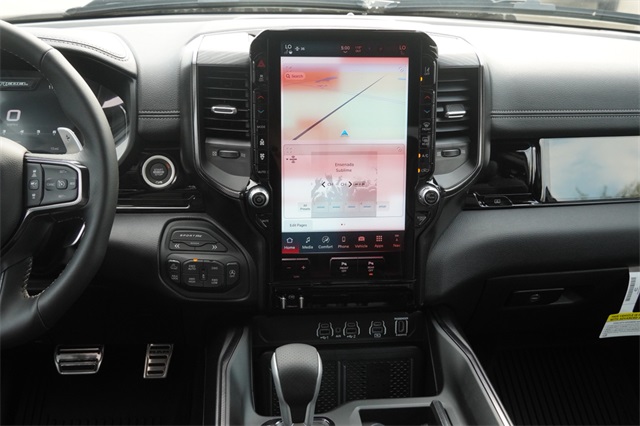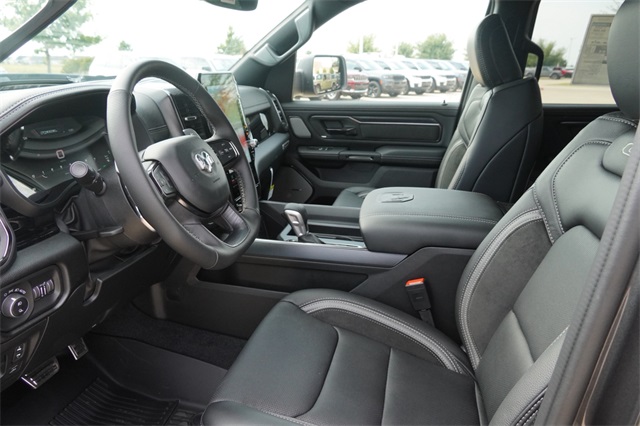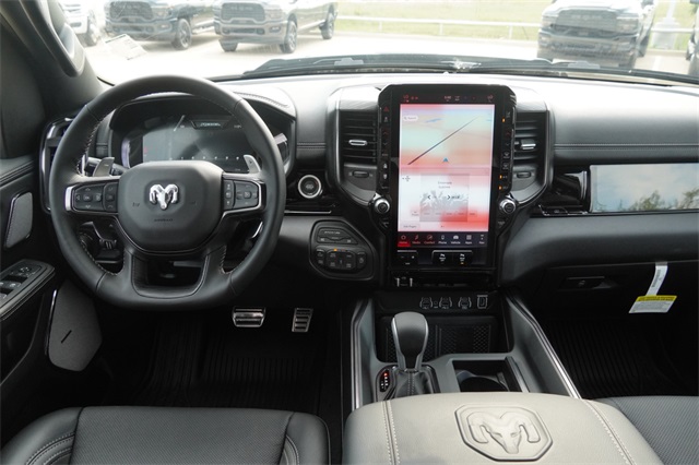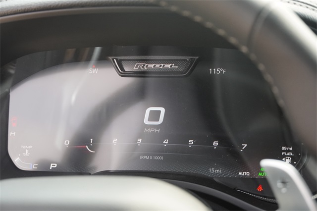 This 1500 Rebel comes well equipped with Bed Utility Group (Exterior 115V AC Outlet and MOPAR 4 Adjustable Cargo Tie-Down Hooks), G/T Package (Steering Wheel Mounted Shift Control, 4 Way Front Headrests, Bucket Seats, Driver Seat Memory, Floor Console, Front Seat Back Map Pockets, G/T Decal, GT Interior Theme, Heated Front Seats, Heated Second Row Seats, Heated Steering Wheel, Leather Wrapped Shift Knob, Leather-Wrapped Steering Wheel, Leather/Vinyl Bucket Seats, MOPAR Bright Pedal Kit, Power 4-Way Driver Lumbar Adjust, Power 4-Way Passenger Lumbar Adjust, Power Adjust 8-Way Driver Seat, Power Adjust 8-Way Front Passenger Seat, Rear 60/40 Folding Split Recline Seat, Under Seat Lighting, and Ventilated Front Seats), Quick Order Package 21W Rebel, Rebel Level 2 Equipment Group (14.4" Touchscreen Display, 2-Door Passive Entry, Front Door Locks, 4G LTE Wi-Fi Hot Spot, Disassociated Touchscreen Display, Dual Wireless Charging Pad, Front Passenger Interactive Display, GPS Navigation, Power 2-Way Passenger Lumbar Adjust, Power Tailgate, Radio/Driver Seat/Mirrors/Pedals Memory, Rain Sensitive Windshield Wipers, 115V Auxiliary Rear Power Outlet, Accent Color Door Handles, Accent Color Premium Power Mirrors, Accent Color Tailgate Handle, Auto Power-Folding Mirrors, Auto-Dimming Exterior Driver Mirror, Black Painted Exterior Mirrors Caps, Connectivity - US/Canada, Convex Wide-Angle Exterior Mirror Insert, Exterior Mirrors Approach Lamps, Exterior Mirrors Courtesy Lamps, Google Android Auto, GPS Antenna Input, HD Radio, Integrated Center Stack Radio, Off-Road Information Pages, Proximity Approach/Departure Lamps, Rear Window Defroster, Security Alarm, SiriusXM Radio Service, and USB Host Flip), 1500 Rebel, 4D Crew Cab, 3.0L I6, 8-Speed Automatic, 4WD, Granite Crystal Metallic Clearcoat, Black Leather, Dome Dual LED Reading Lamp, Dual-Pane Panoramic Sunroof, Wheels: 18" x 8.0" Painted Mid-Gloss Black, 10 Speakers, 3.92 Rear Axle Ratio, 33 Gallon Fuel Tank, 4-Wheel Disc Brakes, ABS brakes, Air Conditioning, Alloy wheels, AM/FM radio: SiriusXM with 360L, Apple CarPlay/Android Auto, Auto High-beam Headlights, Auto-dimming Rear-View mirror, Automatic temperature control, Black Exterior Mirrors, Brake assist, Cloth/Vinyl Bucket Seats, Compass, Delay-off headlights, Driver door bin, Driver vanity mirror, Dual front impact airbags, Dual front side impact airbags, Electronic Stability Control, Front anti-roll bar, Front Bucket Seats, Front Center Armrest w/Storage, Front dual zone A/C, Front fog lights, Front License Plate Bracket, Front reading lights, Front wheel independent suspension, Full Length Upgraded Floor Console, Fully automatic headlights, Garage door transmitter, Heated door mirrors, Heated front seats, Illuminated entry, Leather steering wheel, Low tire pressure warning, Manual Folding Exterior Mirrors, Occupant sensing airbag, Outside temperature display, Overhead airbag, Overhead console, Panic alarm, ParkView Rear Back-Up Camera, Price includes: $3500 - 2026 National Retail Consumer
