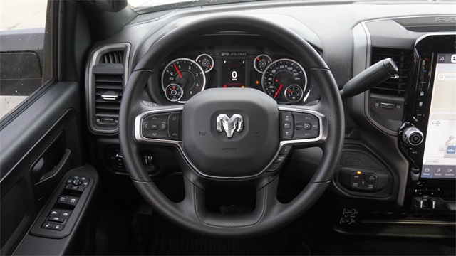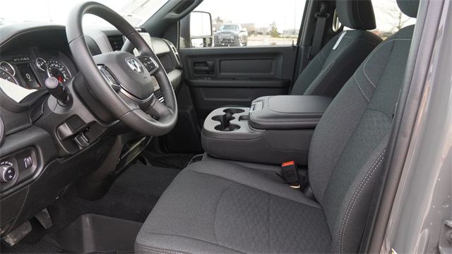 This 2500 Tradesman comes well equipped with Quick Order Package 24B Warlock (2 Way Rear Headrest Seat, 4 Way Front Headrests, 40/20/40 Split Bench Seat, Anti-Spin Differential Rear Axle, Auto Power-Folding Mirrors, Black Exterior Mirrors, Black Wheel Center Hub, Black Wheel Flares, Carpet Floor Covering, Cloth 40/20/40 Bench Seat, Exterior Mirrors Courtesy Lamps, Exterior Mirrors with Heating Element, Exterior Mirrors with Supplemental Signals, Forward and Reverse Utility Lights, Front Armrest with Cupholders, Front Performance Tuned Shock Absorbers, Hill Assist, Manual Adjust 4-Way Driver Seat, Manual Adjust 4-Way Front Passenger Seat, Mirror Running Lights, MOPAR Front and Rear Rubber Floor Mats, Power Adjust Mirrors, Power Heated Folding Telescopic Mirrors, Power Telescoping Mirrors, Power-Adjustable Convex Aux Mirrors, Rear Folding Seat, Rear Performance Tuned Shock Absorbers, Rear Wheelhouse Liners, Remote USB Port - Charge Only, Storage Tray, Warlock Decal, and Wheels: 20" x 8.0" Black Diamond Cut Aluminum), Tradesman Level 1 Equipment Group (115-Volt Auxiliary Front Power Outlet, 12" Touchscreen Display, 400W Inverter, 4G LTE Wi-Fi Hot Spot, Air Conditioning ATC with Dual Zone Control, Alexa Built-in, Apple CarPlay, Auto-Dimming Rear-View Mirror, Connected Travel and Traffic Services, Connectivity - US/Canada, Disassociated Touchscreen Display, Emergency Vehicle Alert System (EVAS), Exterior 115V AC Outlet, For Details, Visit DriveUconnect.com, For More Info, Call 800-643-2112, Global Telematics Box Module, Google Android Auto, GPS Antenna Input, GPS Navigation, HD Radio, Integrated Voice Command with Bluetooth, Off-Road Info Pages, Radio: Uconnect 5 Navigation with 12.0" Display, Rear Power Sliding Window, Selectable Tire Fill Alert, SiriusXM Radio Service, SiriusXM with 360L, Tinted Acoustic Windshield Glass, and Trailer Tow Pages), 4-Wheel Disc Brakes, 5th Wheel/Gooseneck Towing Prep Group, 6 Speakers, ABS brakes, Air Conditioning, AM/FM radio: SiriusXM, Apple CarPlay/Android Auto, Brake assist, Clearance Lamps, Compass, Delay-off headlights, Driver door bin, Dual front impact airbags, Dual front side impact airbags, Electronic Stability Control, Front anti-roll bar, Front Center Armrest w/Storage, Front fog lights, Front License Plate Bracket, Front reading lights, Fully automatic headlights, Illuminated entry, Low tire pressure warning, Manual Folding Exterior Mirrors, Manual Telescoping Mirrors, Mopar Black Tubular Side Steps, Occupant sensing airbag, Outside temperature display, Overhead airbag, Overhead console, Panic alarm, ParkView Rear Back-Up Camera, Passenger door bin, Passenger vanity mirror, Power steering, Power windows, Radio data system, Radio: Uconnect 5 with 8.4" Display, Rear anti-roll bar, Rear step bumper, Rear window defroster, Remote keyless entry, Speed control, Tachometer, Tilt steering wheel, Traction control, Variably intermittent wipers, Voltmeter, and Wheels: 17" x 7.5" Black Steel StyleD.