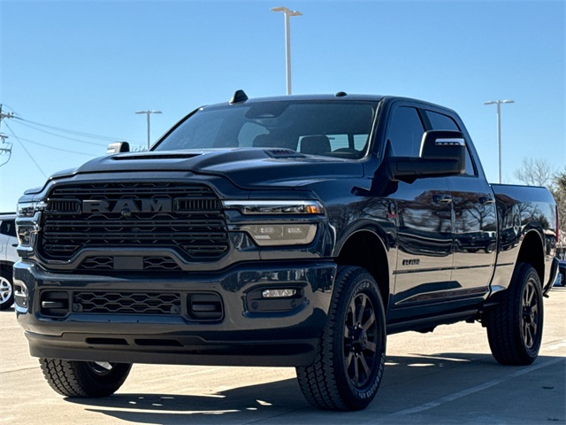 2026 Ram 2500 Laramie 4D Crew Cab Forged Blue Metallic 4WD 8-Speed Automatic 6.7L I6 This vehicle comes well equipped with Laramie Level 2 Plus Equipment Group (#1 Seat Foam Cushion, 115V Auxiliary Rear Power Outlet, 14.4" Touchscreen Display, 17 Speaker Harman/Kardon Premium Sound, 2 Way Rear Headrest Seat, 2nd Row in Floor Storage Bins, 4 Way Front Headrests, 4G LTE Wi-Fi Hot Spot, Active Lane Management System, Adaptive Steering System, Alexa Built-in, Anti-Spin Differential Rear Axle, Apple CarPlay, Auto Adjust in Reverse Exterior Mirrors, Auto Dim Exterior Mirror, Auto High Beam Headlamp Control, Auto Power-Folding Mirrors, Auto-Dimming Exterior Passenger Mirror, Bucket Seats, Center Stop Lamp with Cargo View Camera, Chrome Exterior Mirrors, Connected Travel and Traffic Services, Connectivity - US/Canada, Disassociated Touchscreen Display, Drowsy Driver Detection, Dual Wireless Charging Pad, Emergency Vehicle Alert System (EVAS), Exterior Mirrors Courtesy Lamps, Exterior Mirrors with Heating Element, Exterior Mirrors with Memory, Exterior Mirrors with Supplemental Signals, Foam Bottle Insert (door Trim Panel), Folding Flat Load Floor Storage, For Details, Visit DriveUconnect.com, For More Info, Call 800-643-2112, Forward and Reverse Utility Lights, Front Seat Back Map Pockets, Full Length Upgraded Floor Console, Global Telematics Box Module, Google Android Auto, GPS Antenna Input, GPS Navigation, HD Radio, Heated Front Seats, Heated Steering Wheel, High Back Seats, Integrated Voice Command with Bluetooth, Leather Trimmed Bucket Seats, LED Bed Lighting, Mirror Running Lights, MOPAR Deployable Bed Step, MOPAR Spray in Bedliner, Off-Road Info Pages, Power 2-Way Driver Lumbar Adjust, Power 2-Way Passenger Lumbar Adjust, Power Adjust 8-Way Driver Seat, Power Adjust 8-Way Front Passenger Seat, Power Adjust Mirrors, Power Adjustable Pedals with Memory, Power Deployable Running Boards, Power Heated Fold Telescopic Mirrors with Memory, Power Telescoping Mirrors, Power-Adjustable Convex Aux Mirrors, Radio: Uconnect 5 Nav with 14.4" Display, Radio/Driver Seat/Mirrors/Pedals Memory, Rain Sensitive Windshield Wipers, Rear 60/40 Folding Seat, Remote Tailgate Release, Selectable Tire Fill Alert, SiriusXM Radio Service, SiriusXM with 360L, Traffic Sign Recognition, Trailer Tow Pages, and Ventilated Front Seats), Night Edition (Black Exterior Mirrors, Black Exterior Truck Badging, Black Wheel Center Hub, Body Color Grille-Surround, Gloss Black Grille Billets/Accents, Sport Performance Hood, and Wheels: 20" x 8.0" Black Painted Aluminum), Quick Order Package 24H Laramie, Towing Technology Group (Surround View Camera System, Trailer Reverse Guidance, and Trailer Tire Pressure Monitoring System), 10 Speakers, 4-Wheel Disc Brakes, ABS brakes, Air Conditioning, Alloy wheels, AM/FM radio: SiriusXM with 360L, Apple CarPlay/Android Auto, Auto-dimming Rear-View mirror, Automatic temperature control, Brake assist, Bumpers: body-color, Compass, Dash Pass Thru Wire Circuits, Delay-off headlights, Driver door bin, Driver vanity mirror, Dual front impact airbags, Dual front side impact airbags, Electronic Stability Control, Engine Block Heater, Front anti-roll bar, Front Center Armrest w/Storage, Front dual zone A/C, Front fog lights, Front reading lights, Fully automatic headlights, Garage door transmitter, Heated door mirrors, Heated front seats, Heated steering wheel, Illuminated entry, Instrument Panel Mounted Auxiliary Switches, Leather Trim 40/20/40 Bench Seat, Low tire pressure warning, Manufacturer's Statement of Origin, Navigation System, Occupant sensing airbag, Outside temperature display, Overhead airbag, Overhead console, Panic alarm, ParkView Rear Back-Up Camera, Passenger door bin, Passenger vanity mirror, Power door mirrors, Power driver seat, Power passenger seat, Power steering, Power win Price includes: $1000 - 2026 National Bonus Cash . Exp. 03/02/2026 $2000 - 2026 Southwest BC State of Texas Regional Bonus Cash . Exp. 03/02/2026